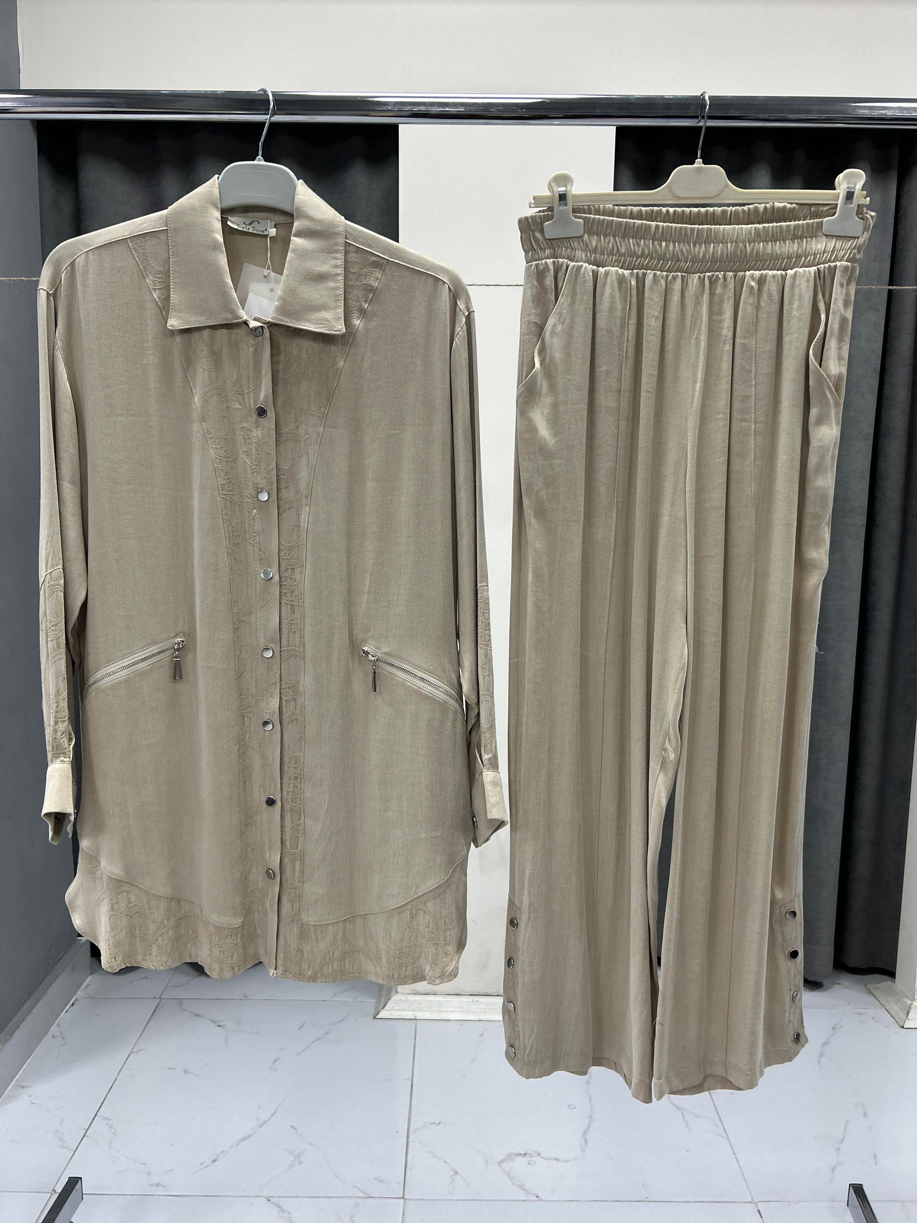 1238 STELLA STORE PATI VE KOLU KENDINDEN DESENLI TAKIM - KREM
