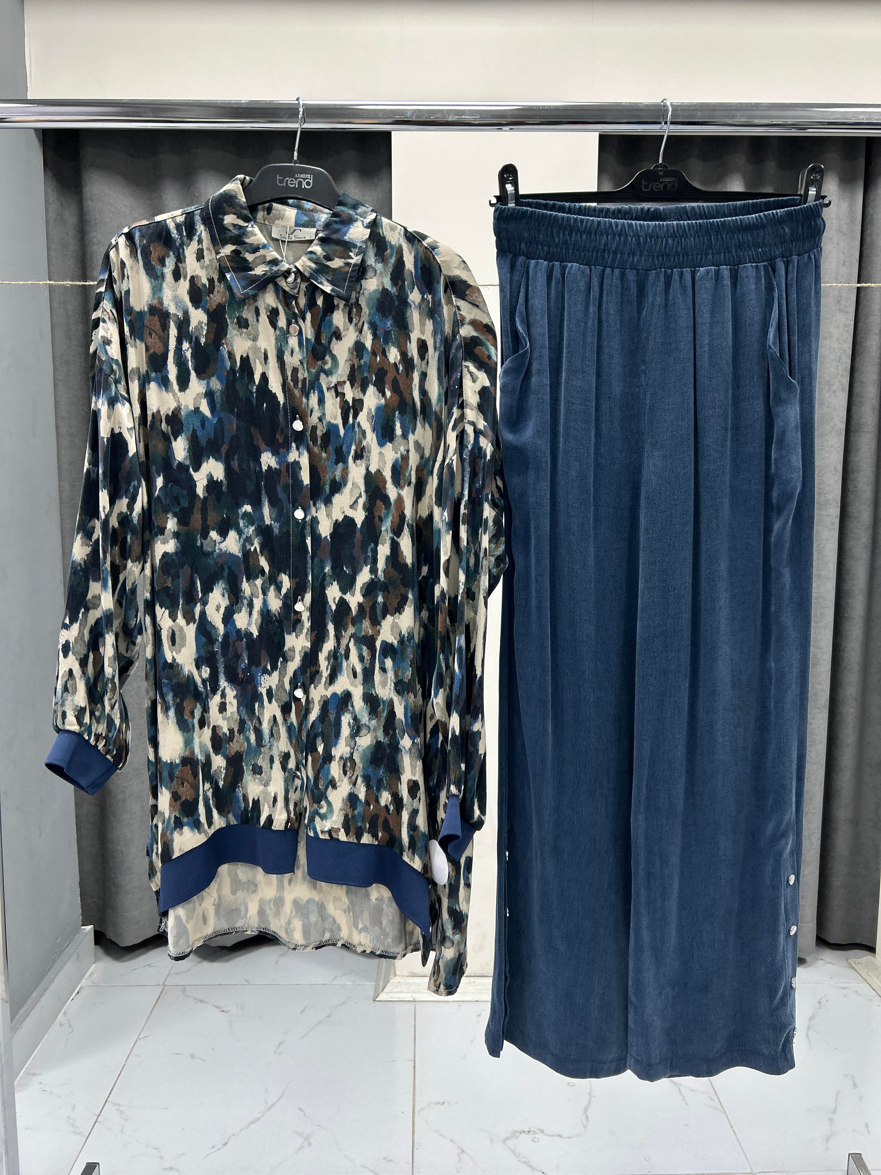 1238 STELLA STORE RENKLİ DESENLİ İPEK CUPRA İKİLİ TAKIM - LACİVERT