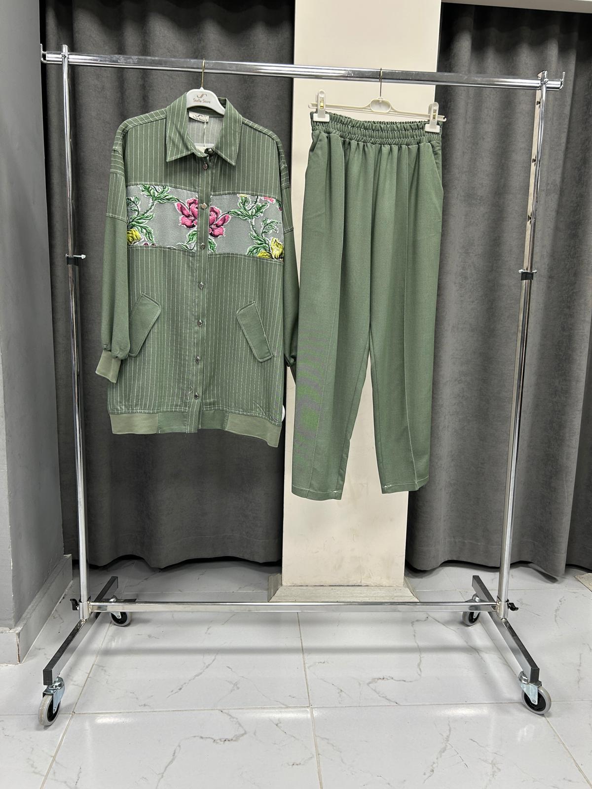 1271 STELLA STORE KADIN ÇİÇEK DESENLİ BELİ LASTİKLİ TAKIM - HAKİ