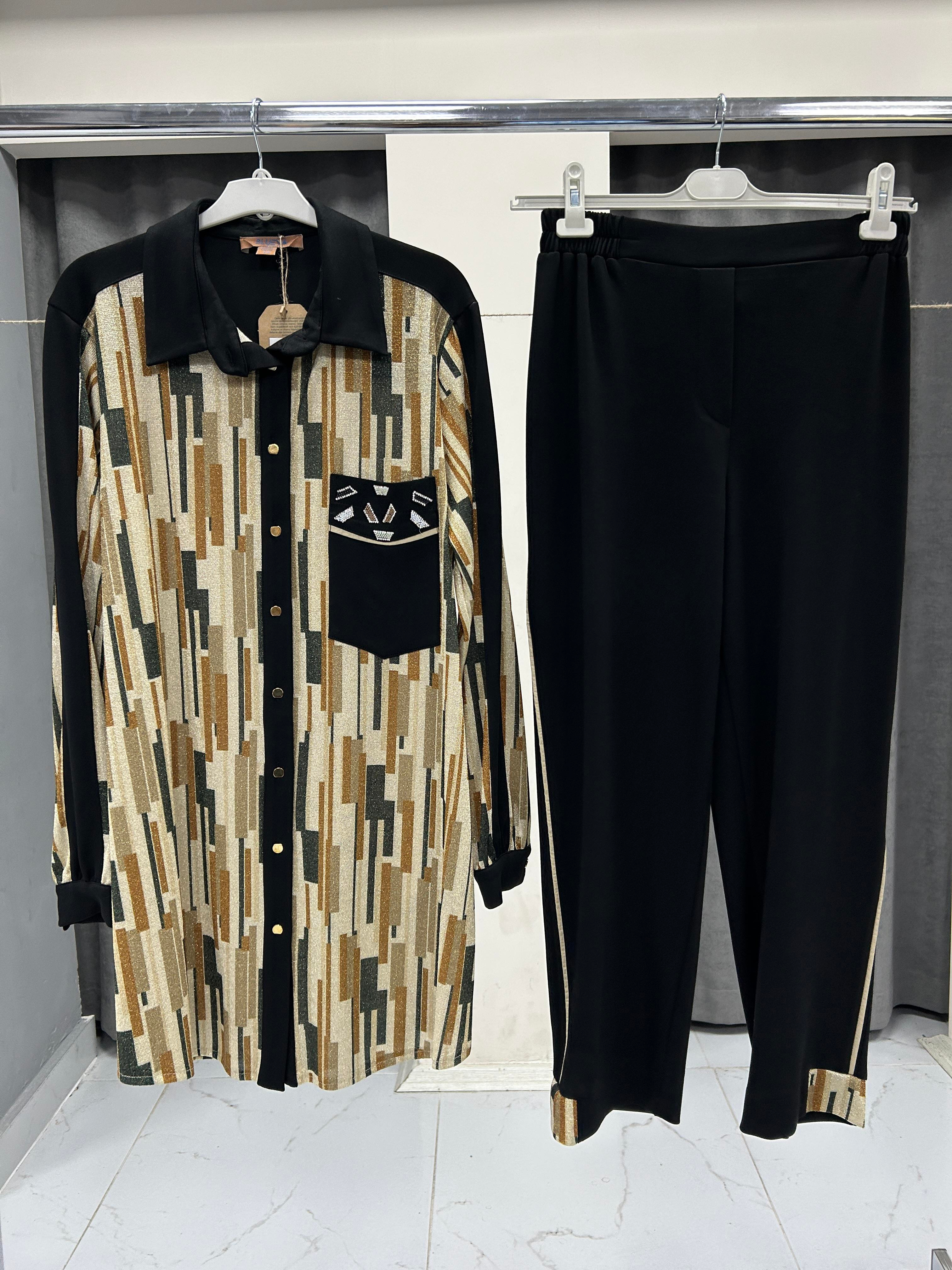 2466-TP-25K BLUEVA DURU ÇUBUK DESEN SİMLİ TRİKO TAKIM - BEJ