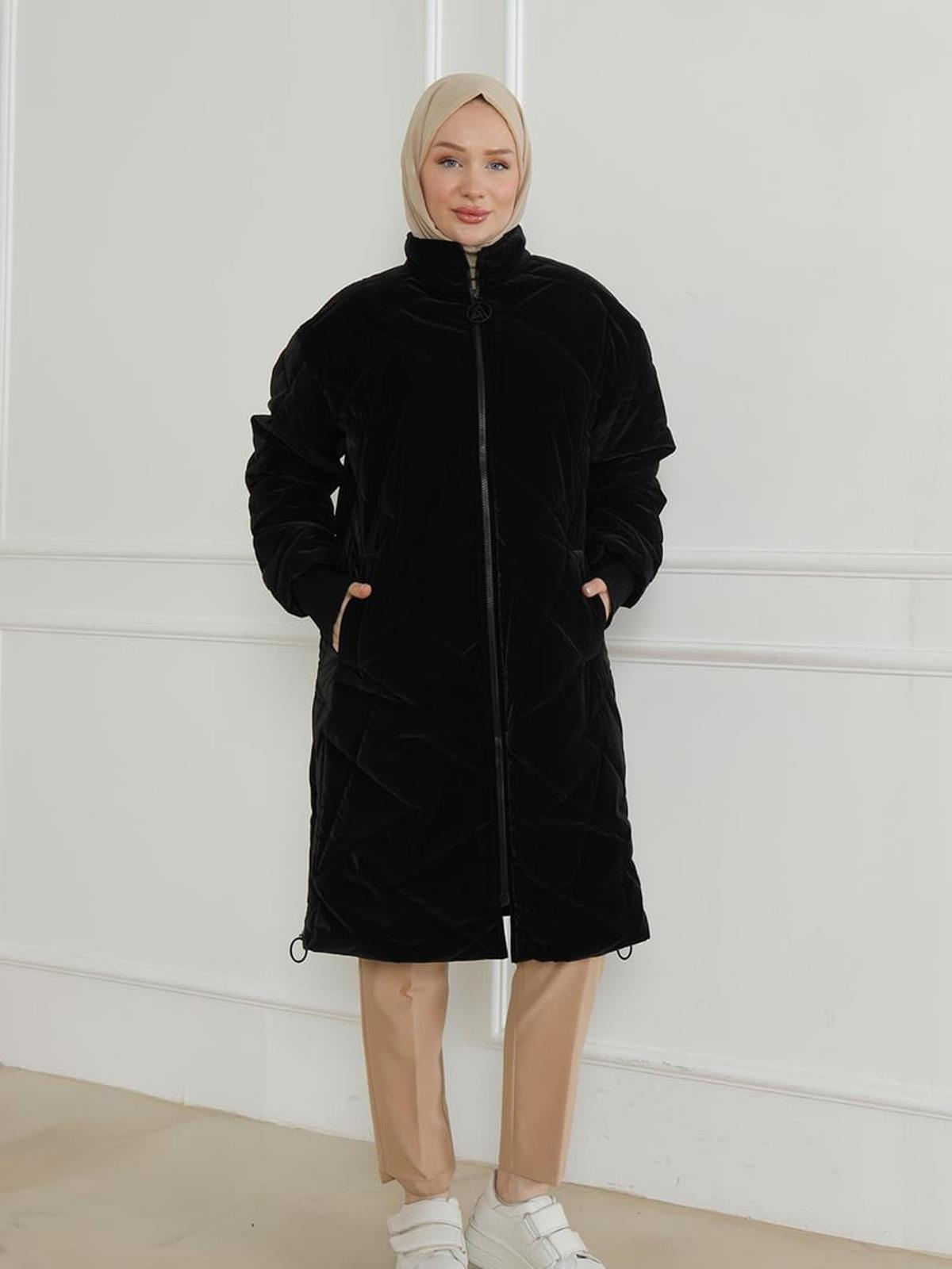 24KT726 ARMİNE TREND KOLLARI RİBANALI KAPİTONE DETAYLI MONT - SİYAH