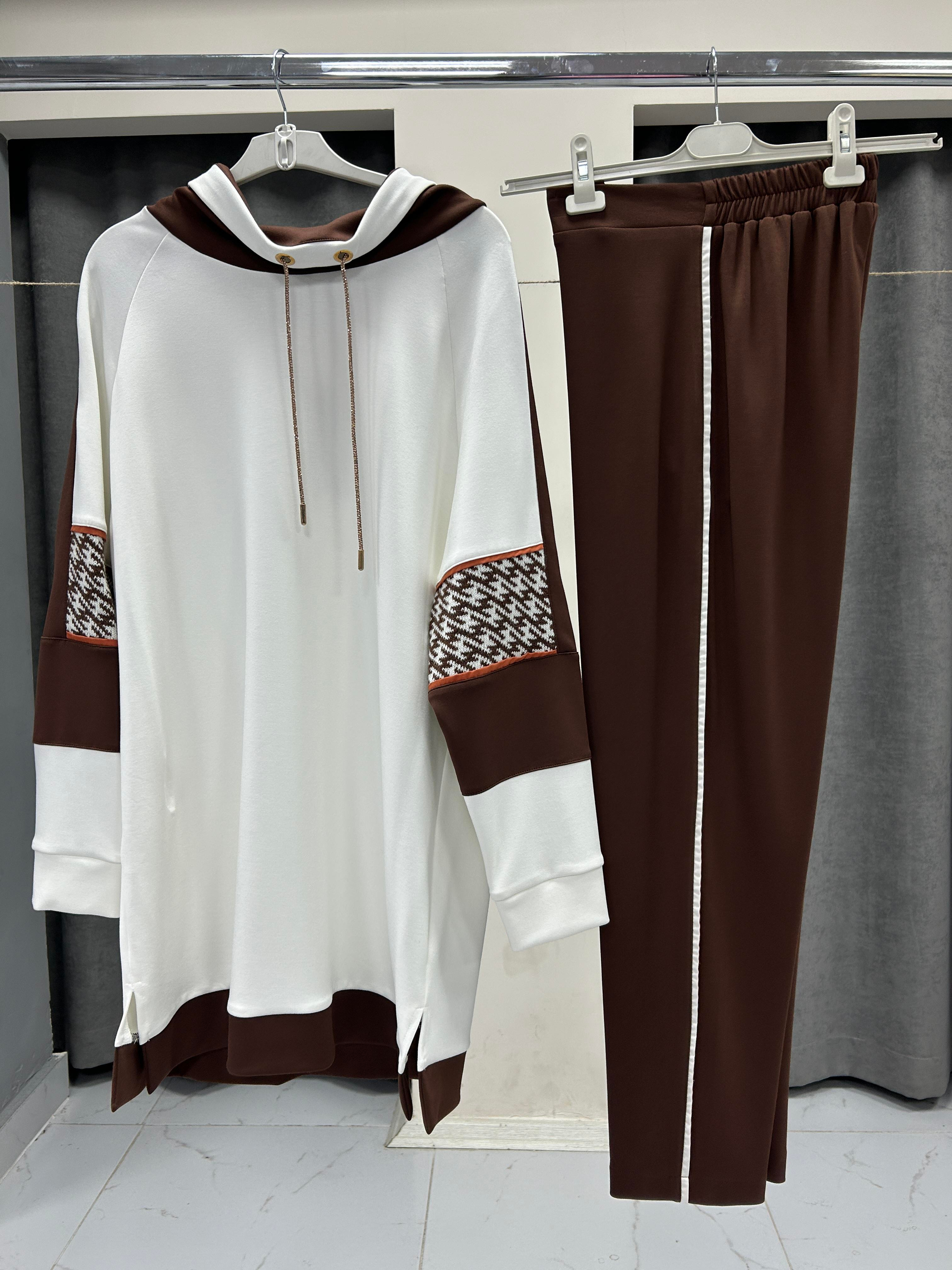 2506-TP-25K BLUEVA MODAL TRİKO KOMBİNLİ TUNİK PANTOLON TAKIM - KAHVERENGİ
