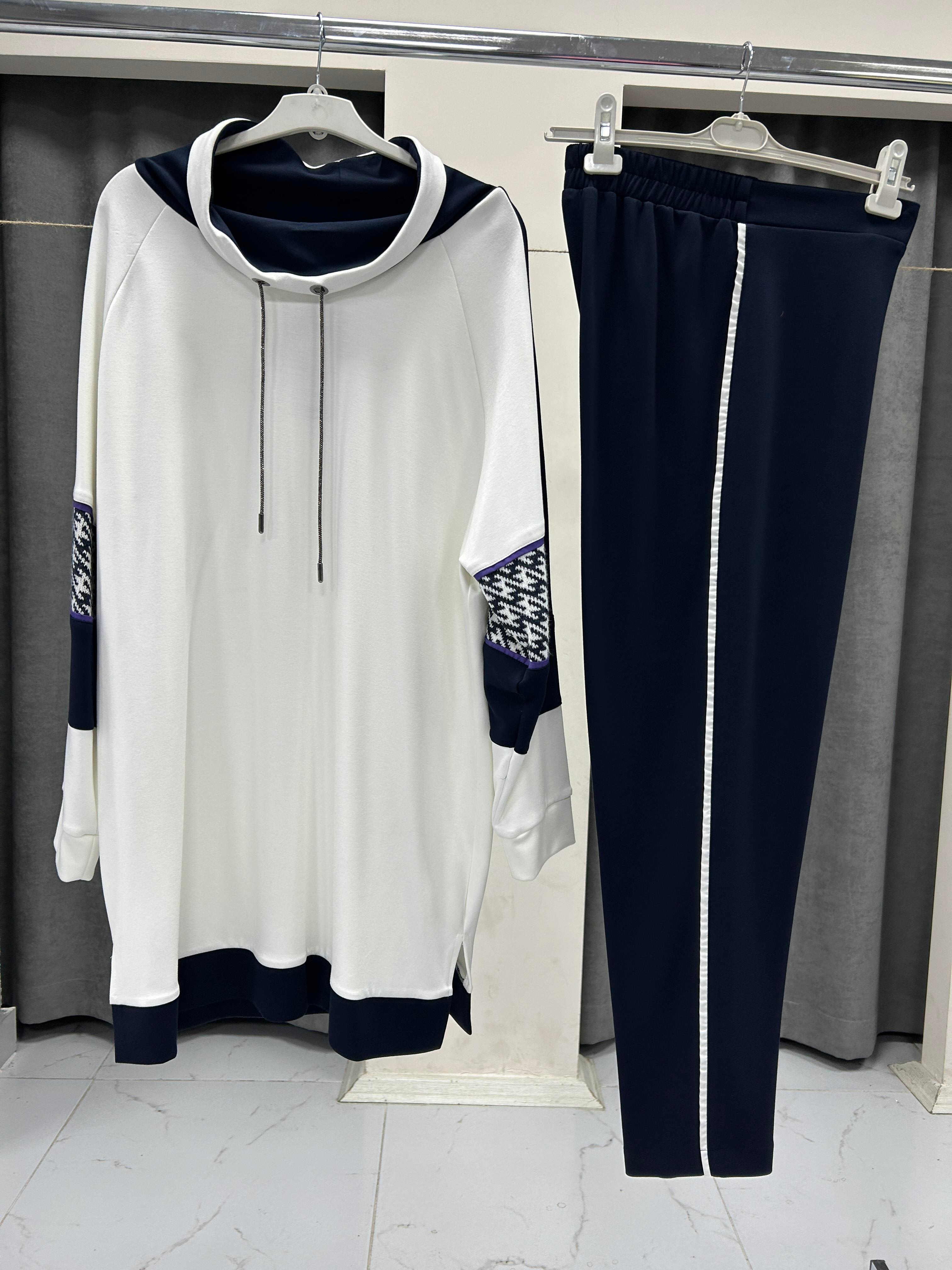 2506-TP-25K BLUEVA MODAL TRİKO KOMBİNLİ TUNİK PANTOLON TAKIM - LACİVERT