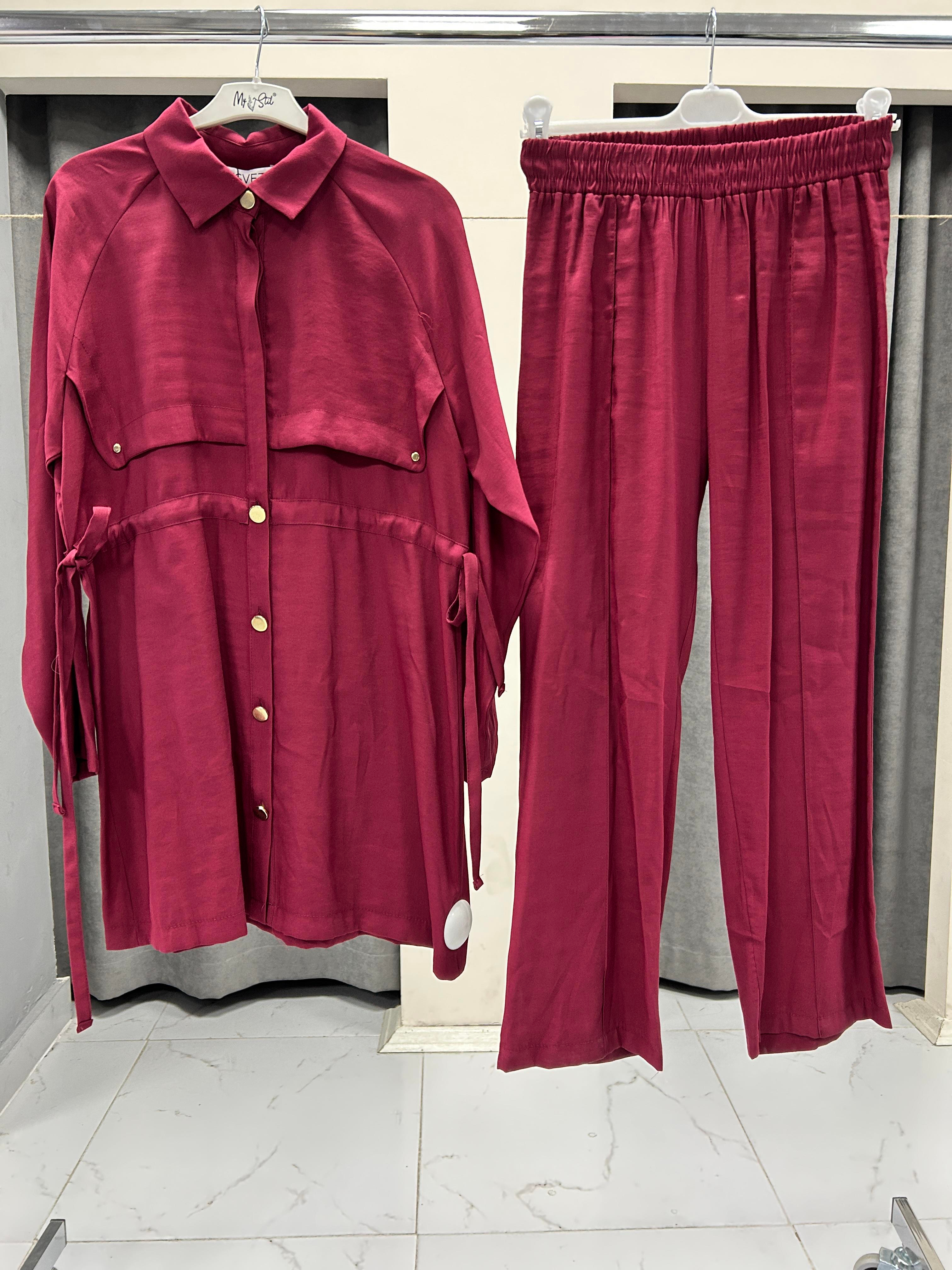 2560 ESVET YANDAN BAĞLAMA DETAYLI İKİLİ TAKIM - BORDO