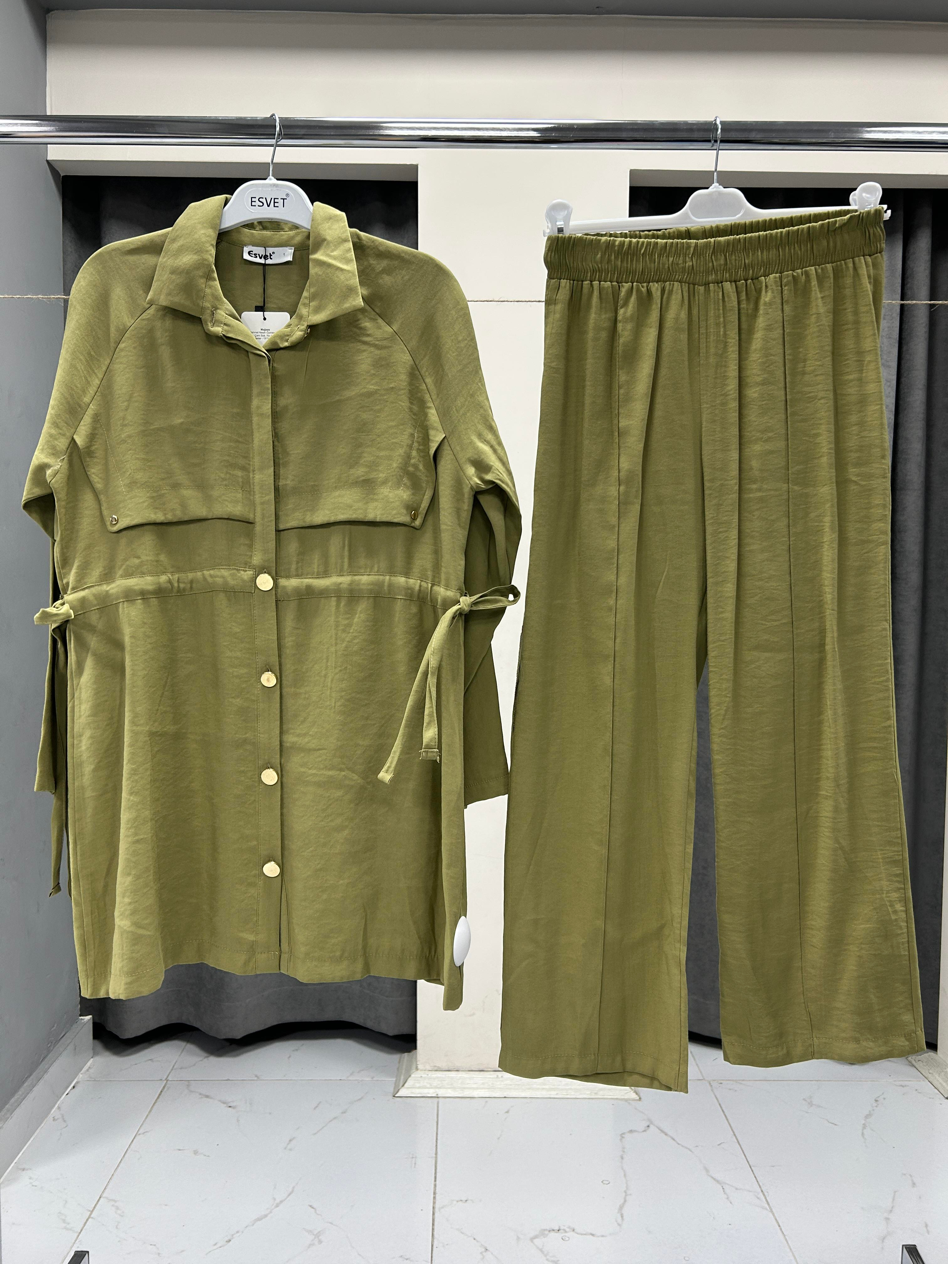 2560 ESVET YANDAN BAĞLAMA DETAYLI İKİLİ TAKIM - YEŞİL
