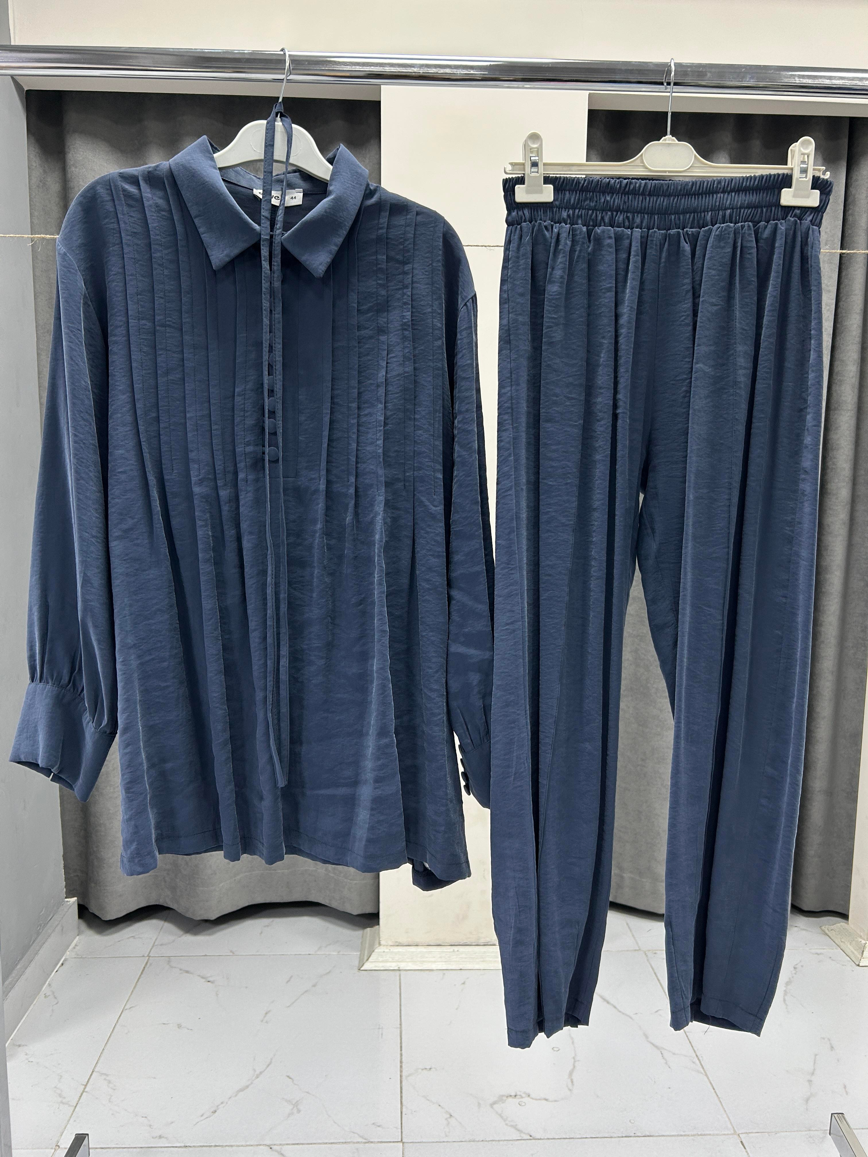 2570 ESVET ÖNDEN DÜĞME DETAYLI İKİLİ TAKIM - LACİVERT