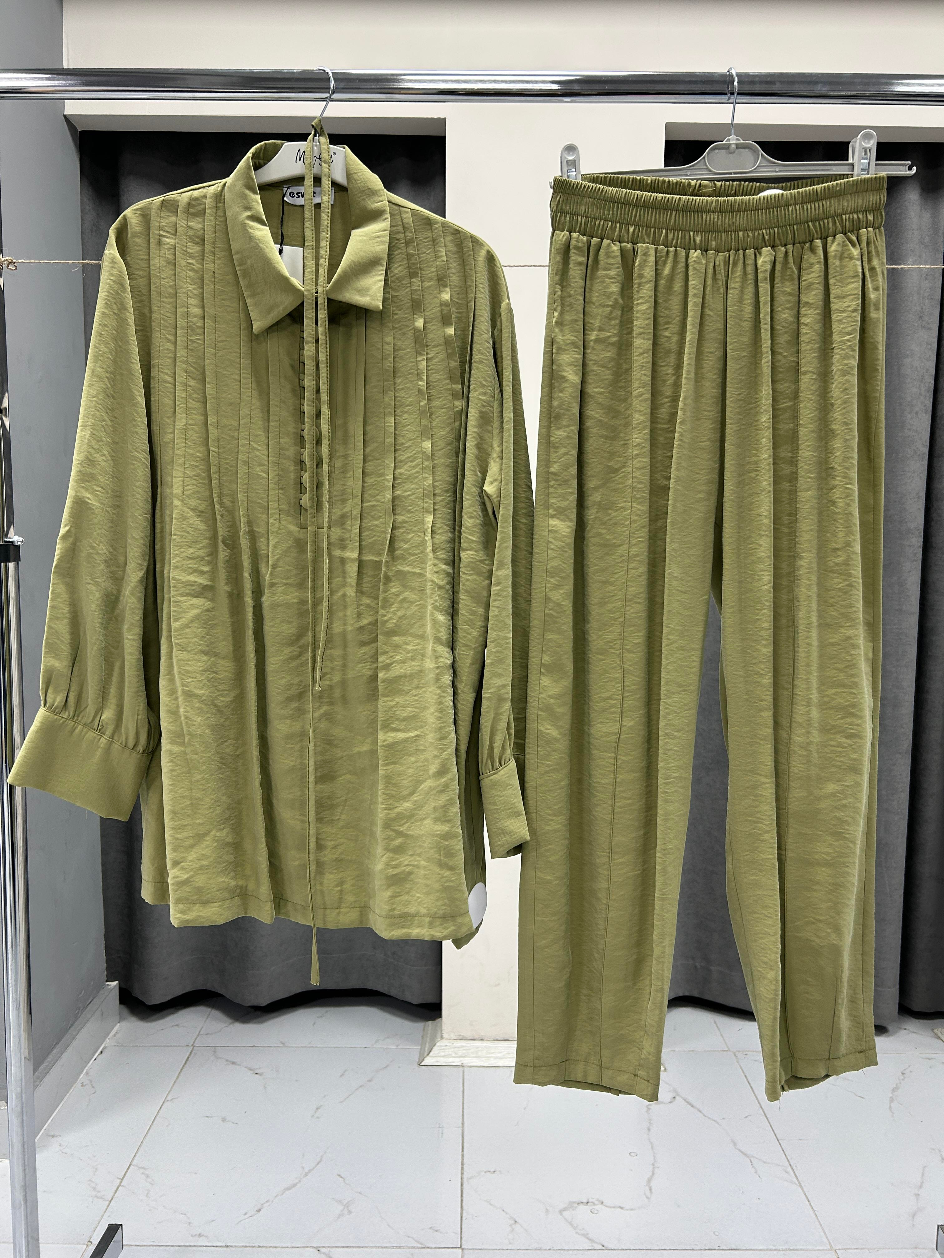 2570 ESVET ÖNDEN DÜĞME DETAYLI İKİLİ TAKIM - YEŞİL