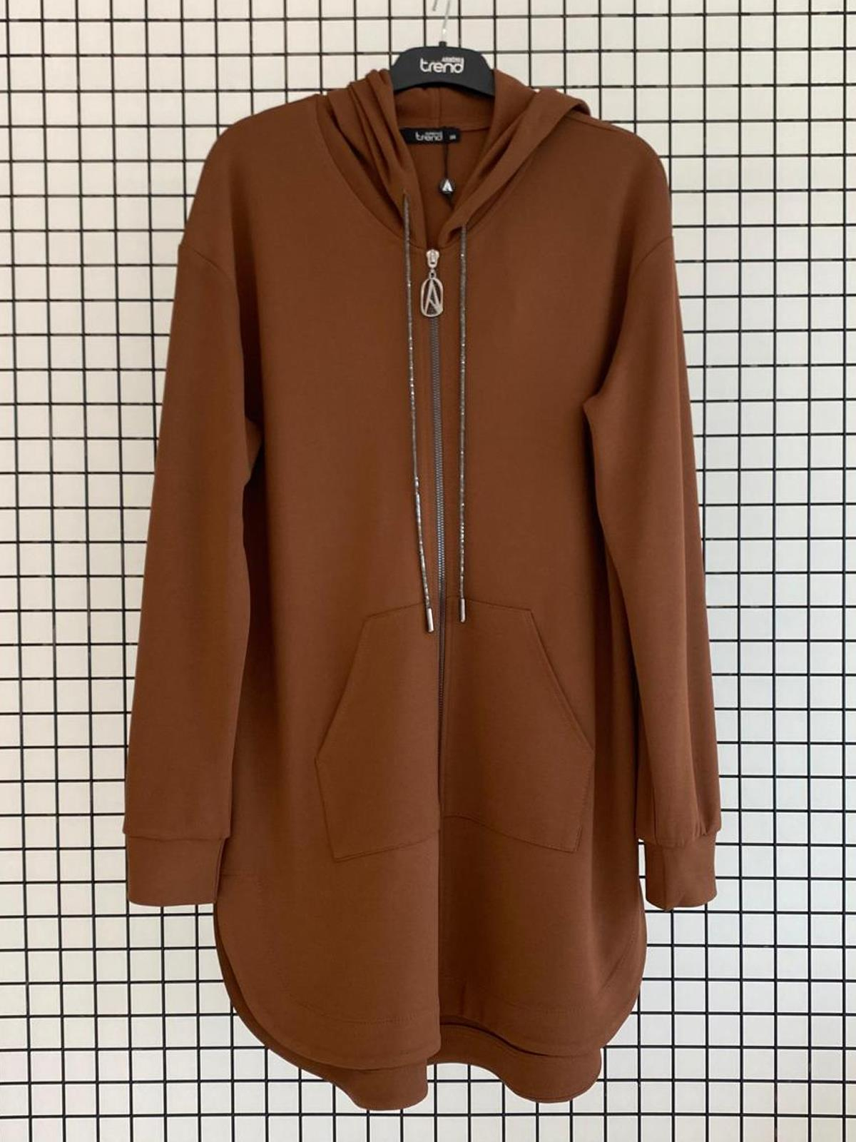 25KT448 ARMINE TREND BAĞCIKLI KAPÜŞONLU TUNİK - KAHVERENGİ