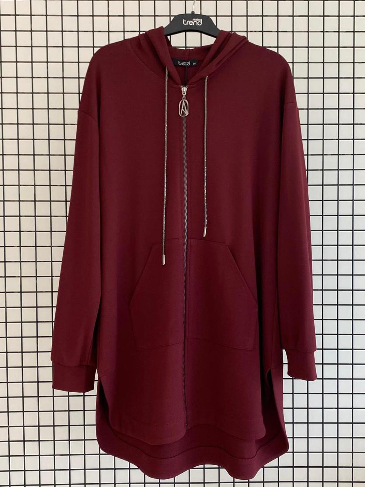 25KT448 ARMINE TREND BAĞCIKLI KAPÜŞONLU TUNİK - KIRMIZI