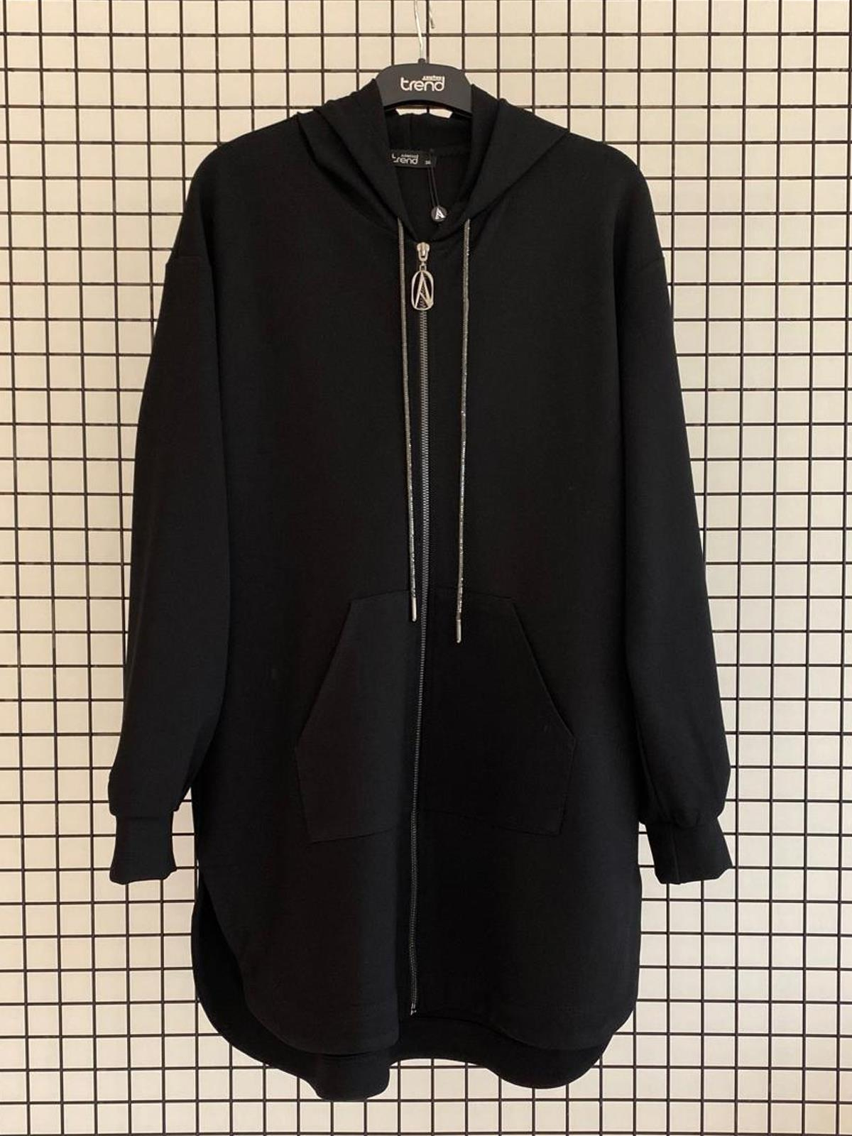 25KT448 ARMINE TREND BAĞCIKLI KAPÜŞONLU TUNİK - SİYAH