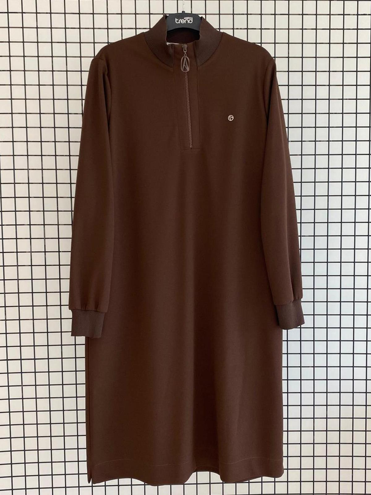 25KT456 ARMINE TREND YARIM FERMUAR DETAY UZUN TUNİK - KAHVERENGİ