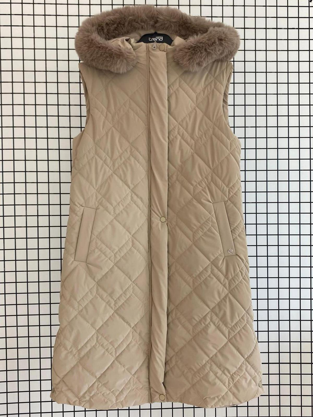 25KT505 ARMINE TREND KÜRK YAKA KAPİTONE ŞİŞME YELEK - BEJ