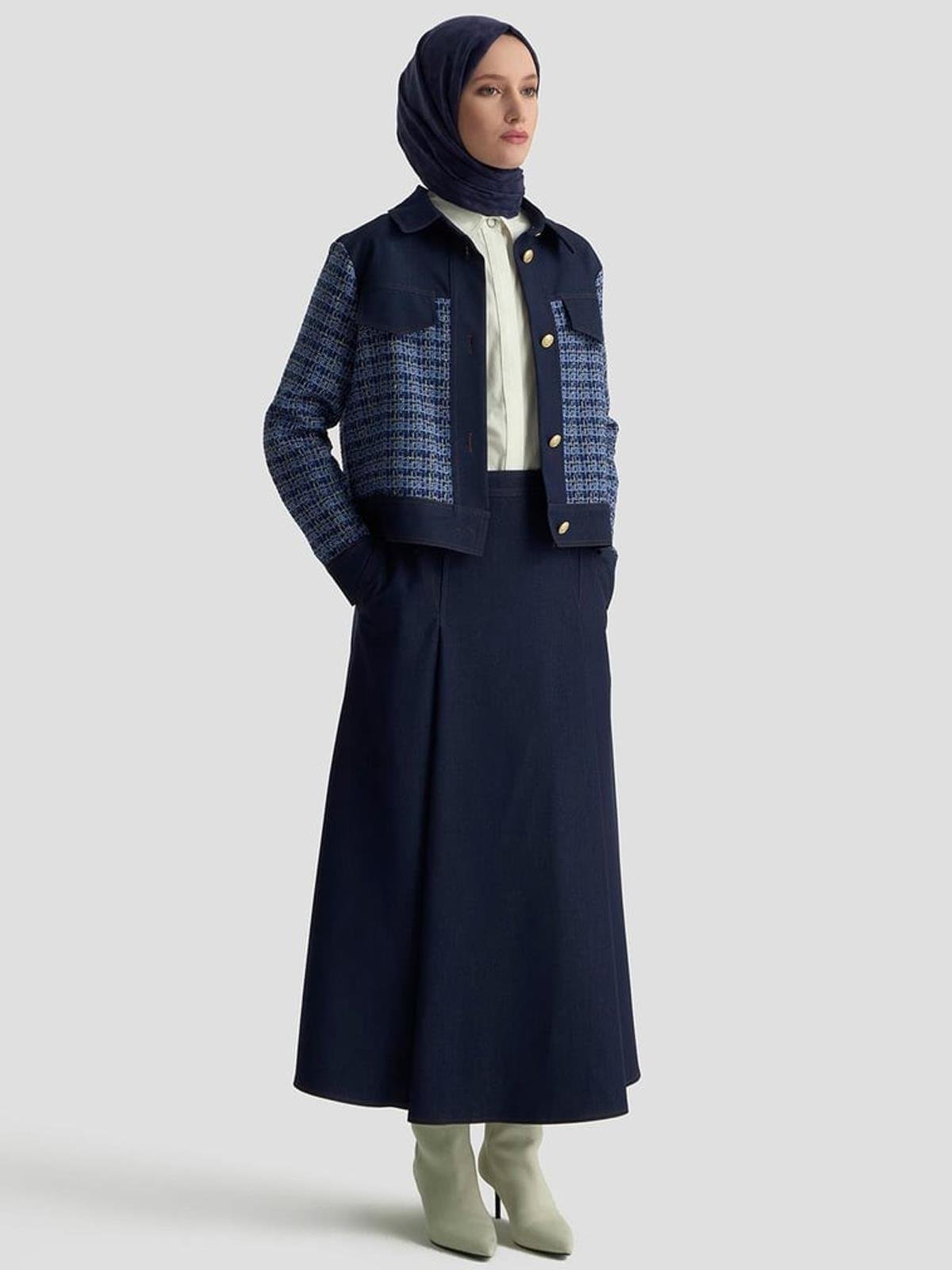 25KT605 ARMİNE TREND GOLD DÜĞME DETAYLI SÜS CEPLİ ETEKLI TÜVİT İKİLİ TAKIM - İNDİGO