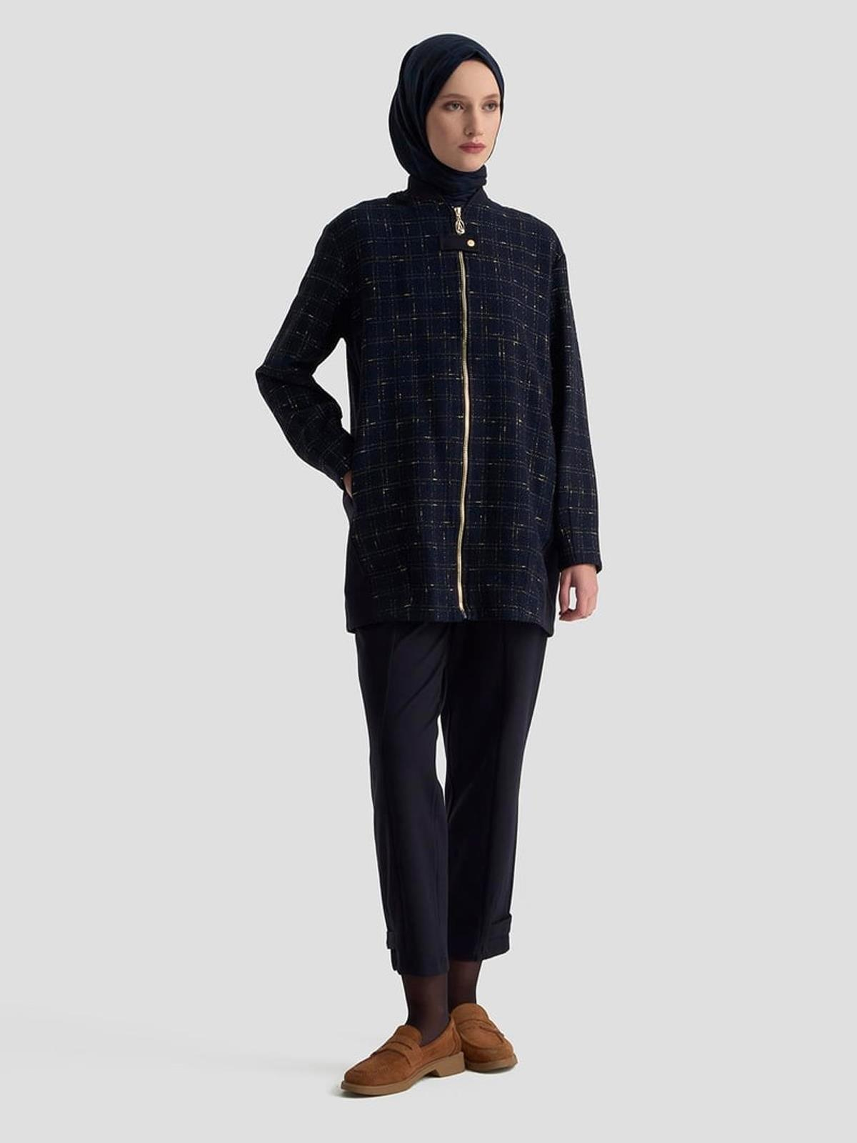 25KT612 ARMİNE TREND BOYDAN FERMUARLI ASTARLI PANTOLONLU İKİLİ TAKIM - LACİVERT