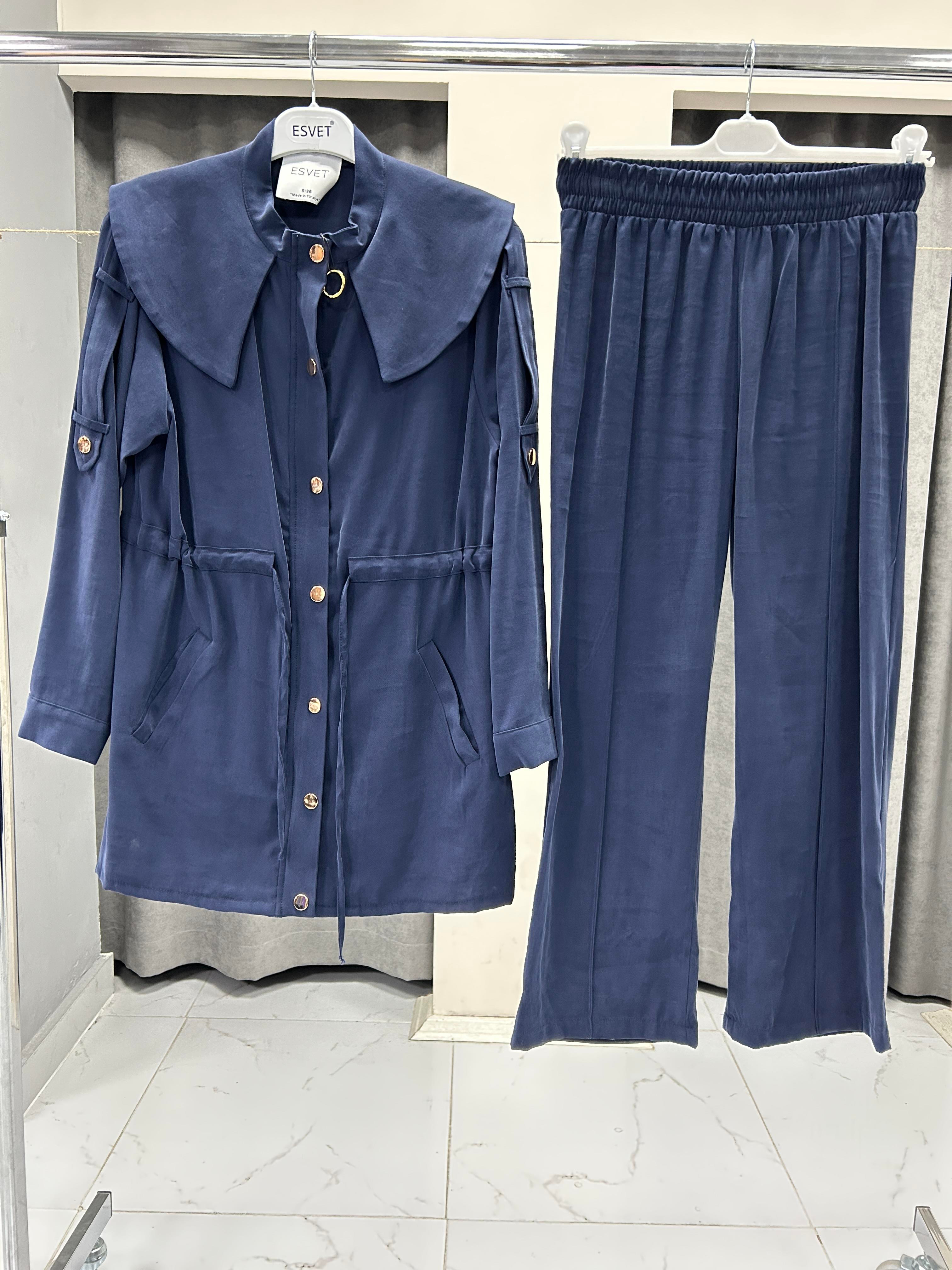 2603 ESVET BEBE YAKALI BELDEN İP BAĞLAMALI İKİLİ TAKIM - LACİVERT