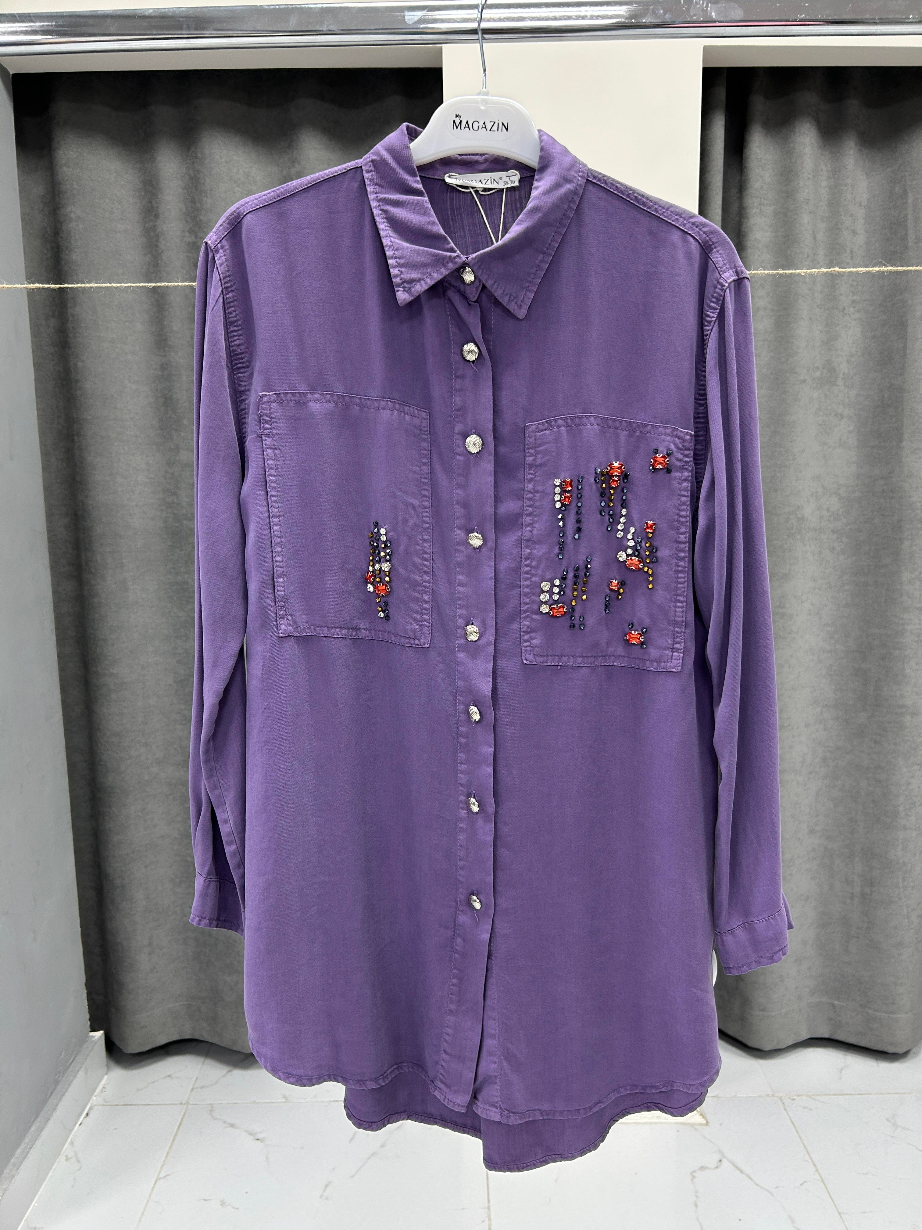 7118 MY MAGAZİN TENSEL KUMAŞ TAŞ İŞLEMELİ GÖMLEK - MOR