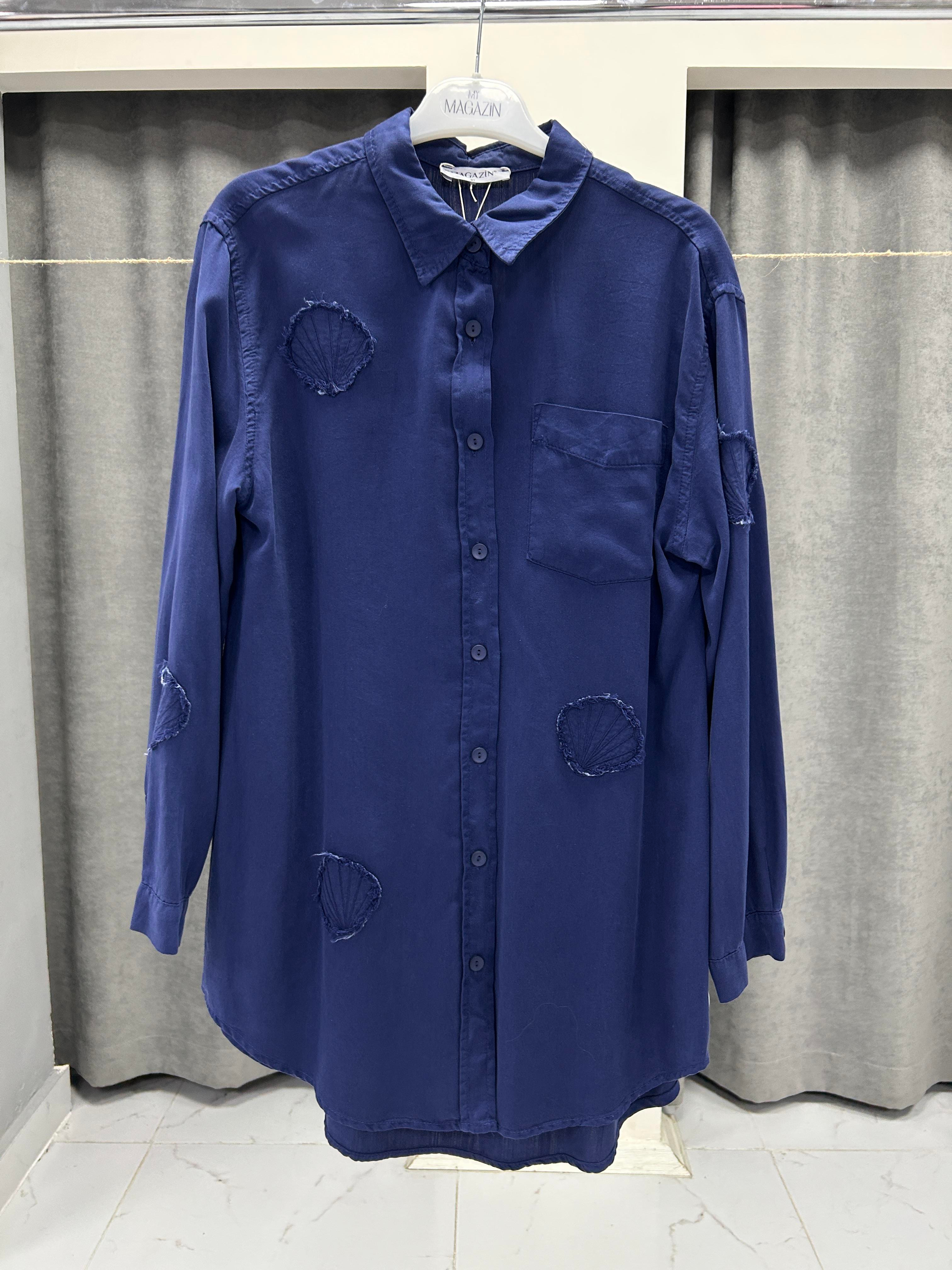 7259 MY MAGAZİN TENSEL KUMAŞ DENİZ KABUĞU İŞLEMELİ GÖMLEK - LACİVERT