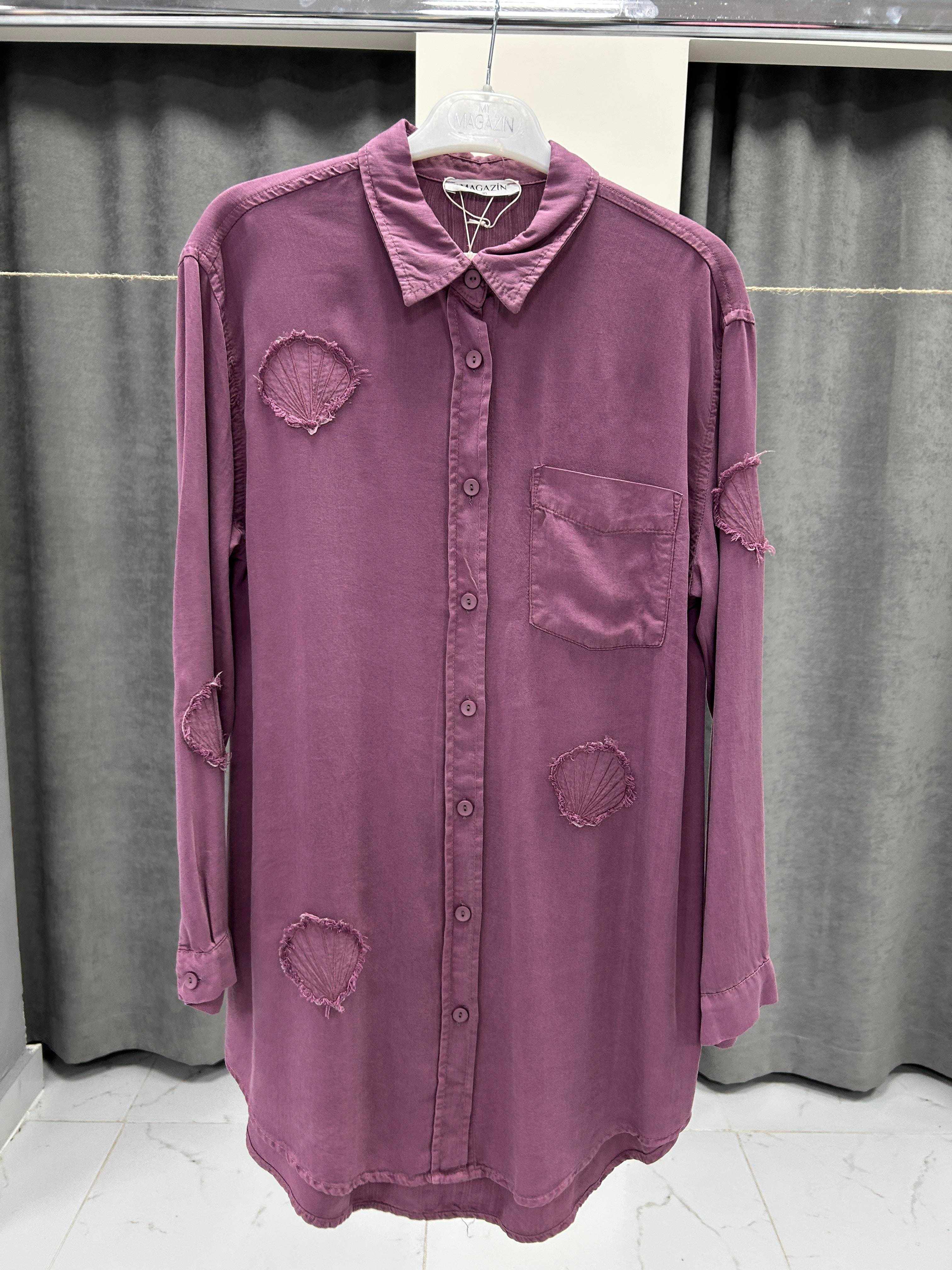 7259 MY MAGAZİN TENSEL KUMAŞ DENİZ KABUĞU İŞLEMELİ GÖMLEK - MÜRDÜM