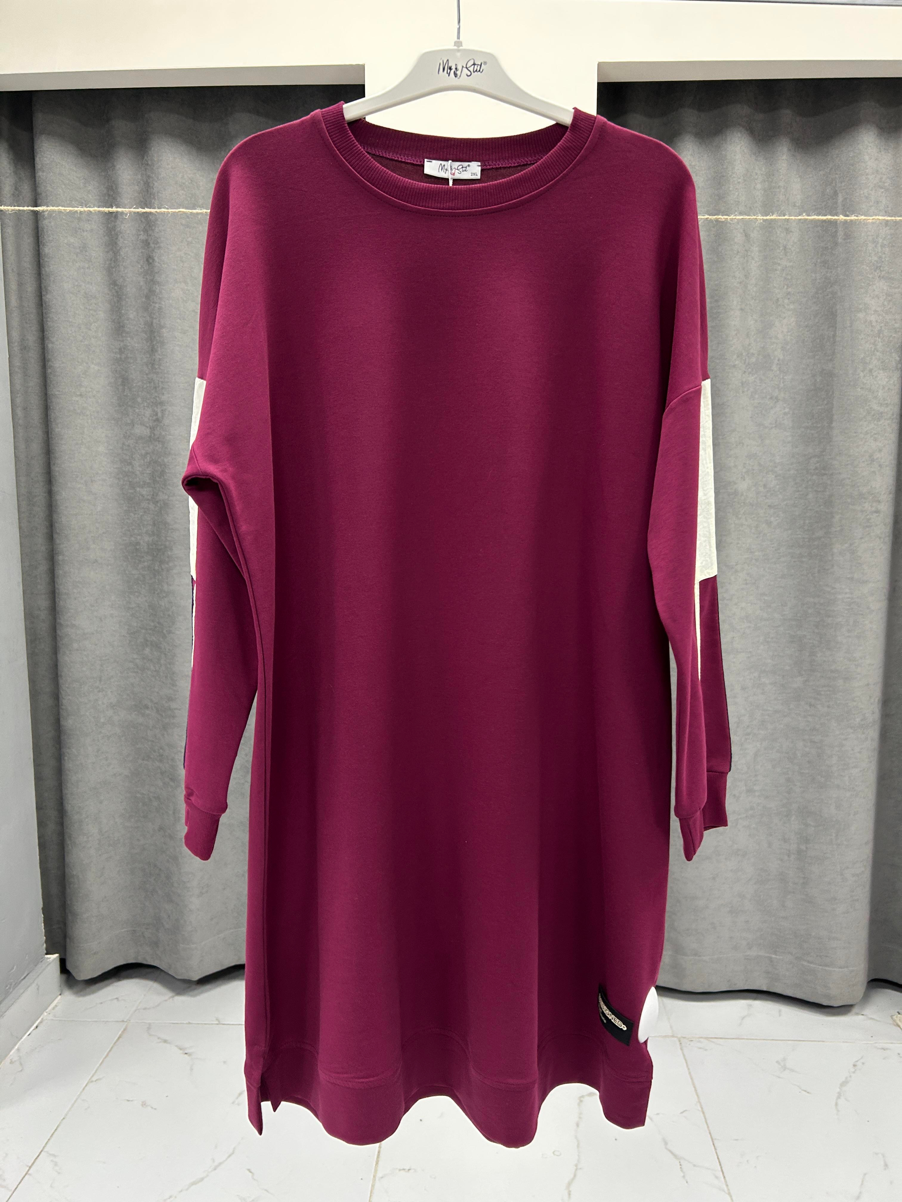 M25K00164-084 MY STİL KADIN RENKLİ KOMBİNLİ ETİKET DETAYLI TESETTÜR TUNİK - BORDO