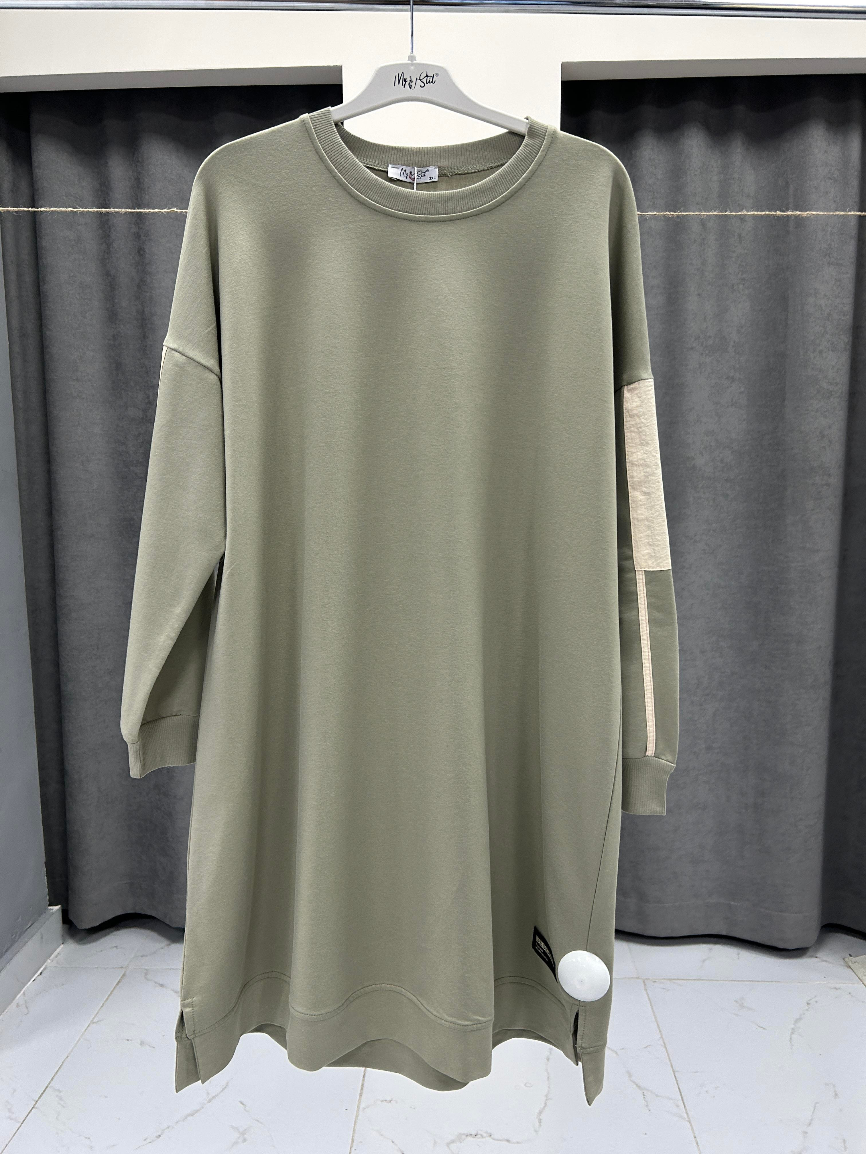 M25K00164-084 MY STİL KADIN RENKLİ KOMBİNLİ ETİKET DETAYLI TESETTÜR TUNİK - HAKİ