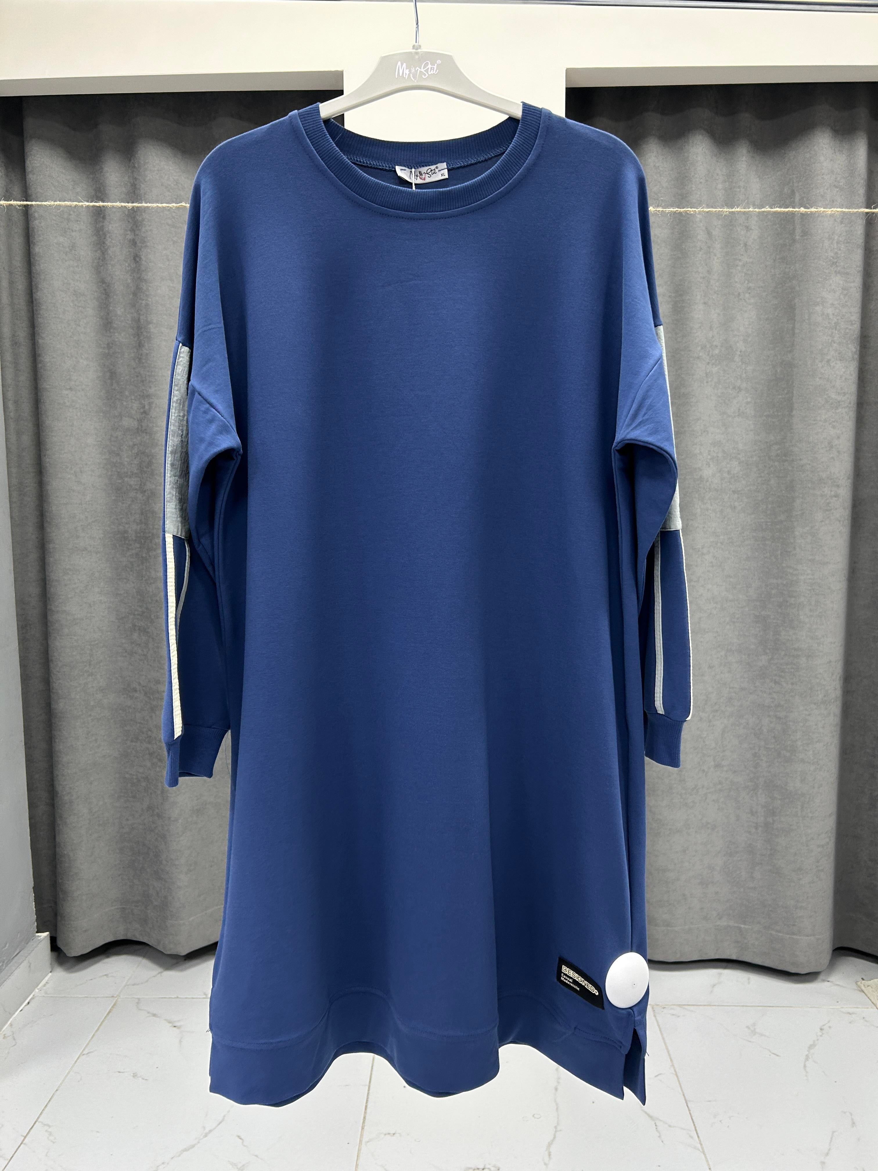 M25K00164-084 MY STİL KADIN RENKLİ KOMBİNLİ ETİKET DETAYLI TESETTÜR TUNİK - LACİVERT