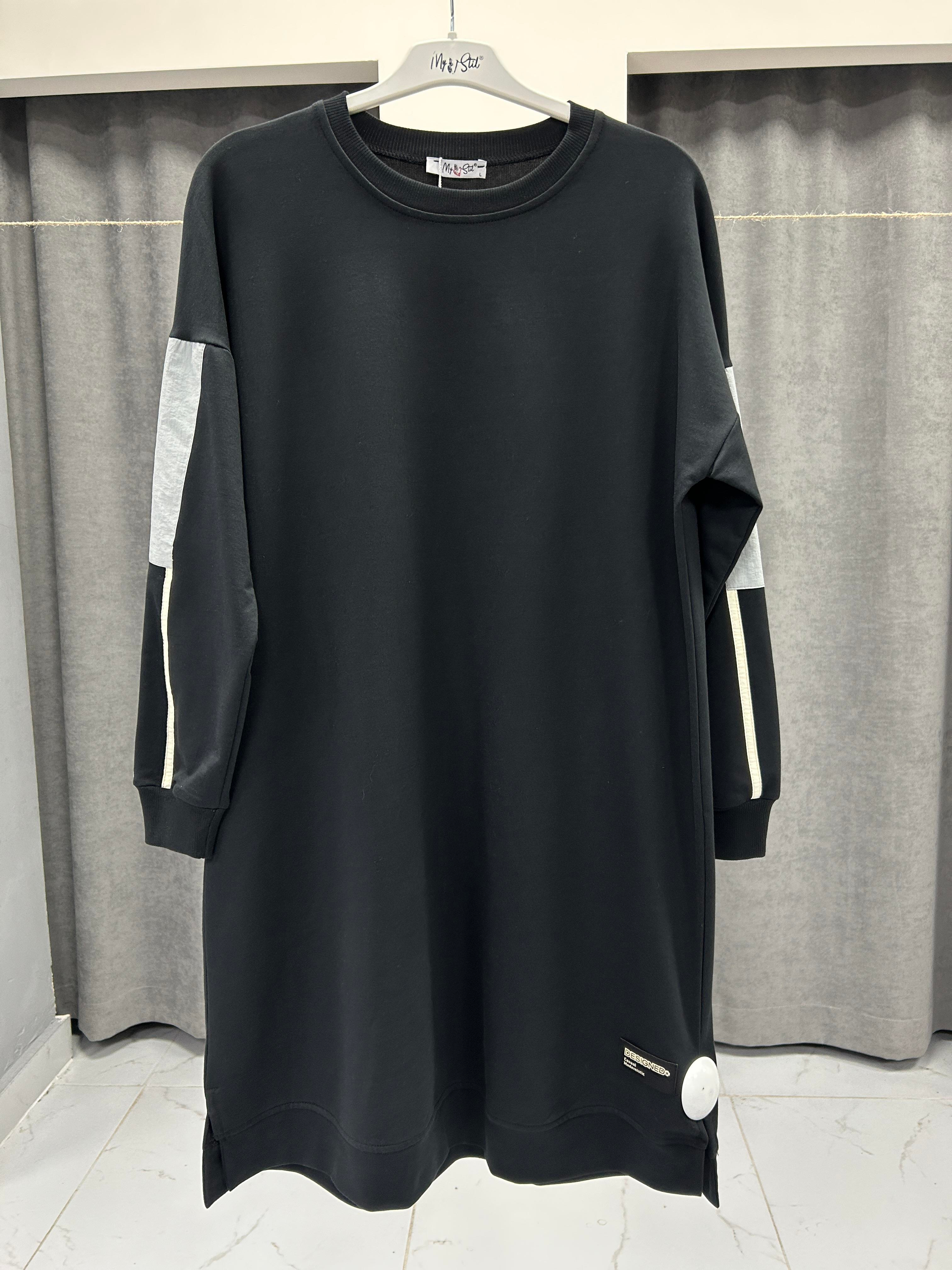 M25K00164-084 MY STİL KADIN RENKLİ KOMBİNLİ ETİKET DETAYLI TESETTÜR TUNİK - SİYAH