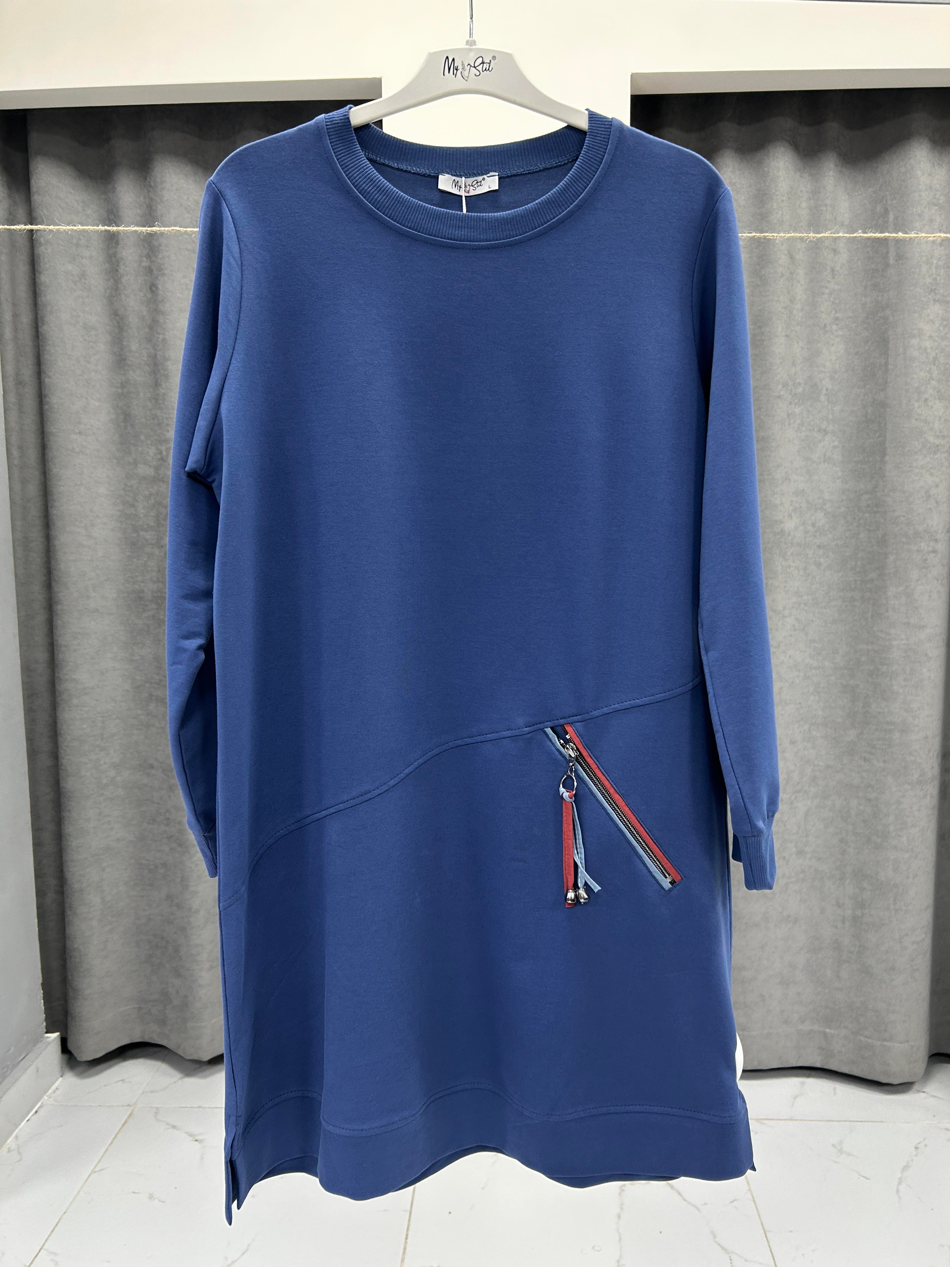 M25K00323-084 MY STİL KADIN CEBİ FERMUAR VE AKSESUAR DETAYLI TUNİK - İNDİGO
