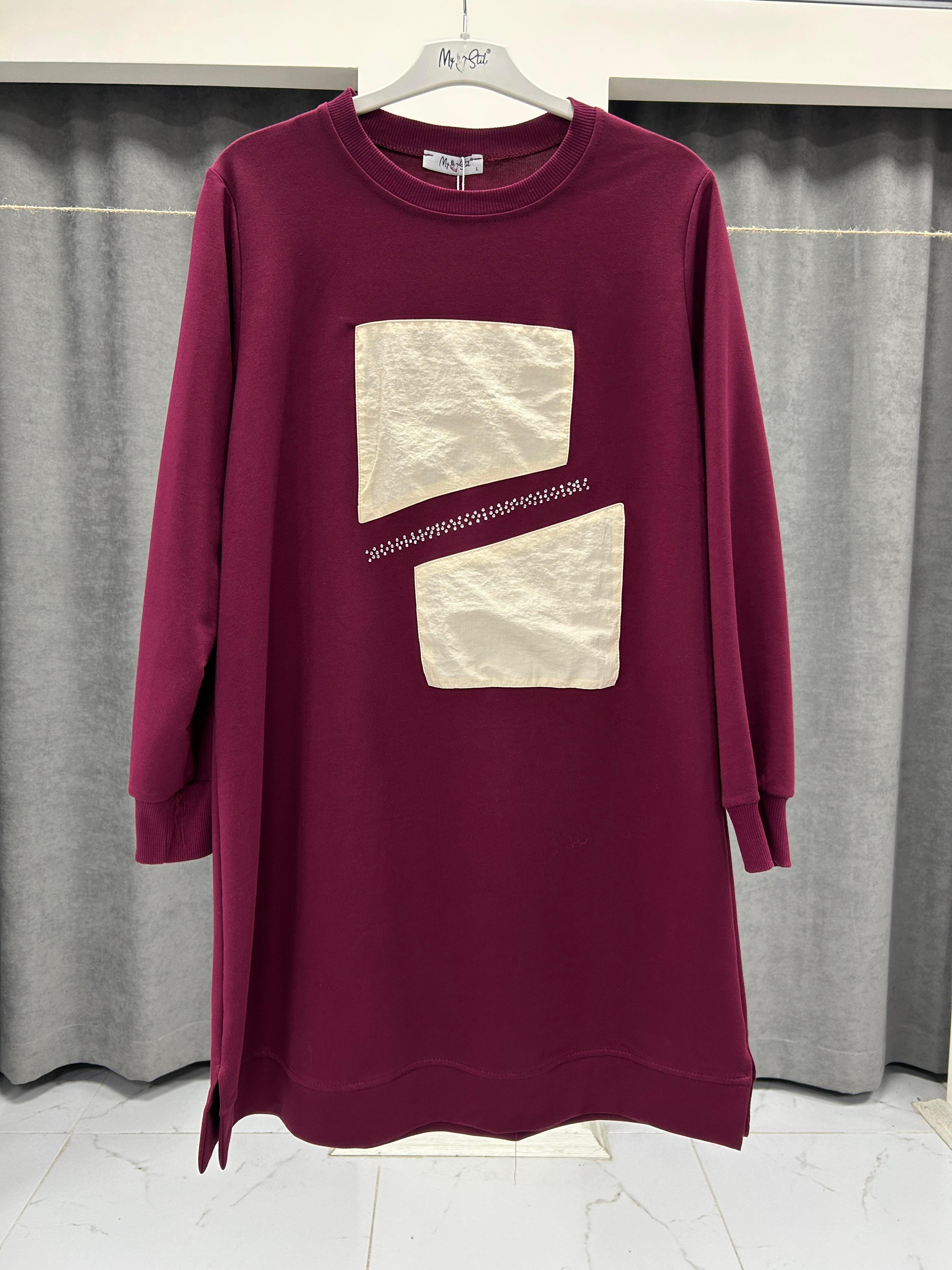 M25K00329-084 MY STİL KADIN KOMBİN VE TAŞ DETAYLI TESETTÜR TUNİK - BORDO