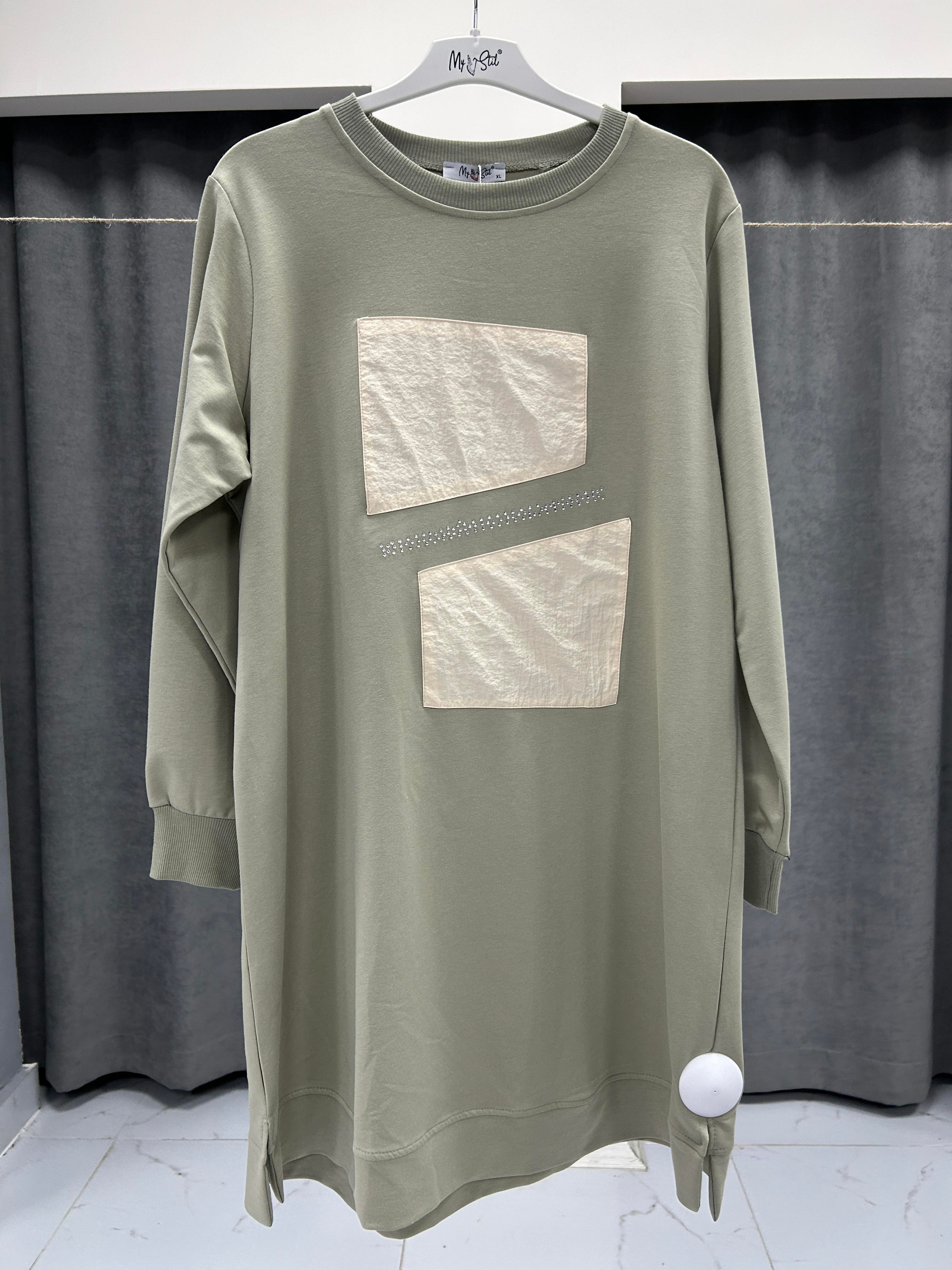 M25K00329-084 MY STİL KADIN KOMBİN VE TAŞ DETAYLI TESETTÜR TUNİK - HAKİ