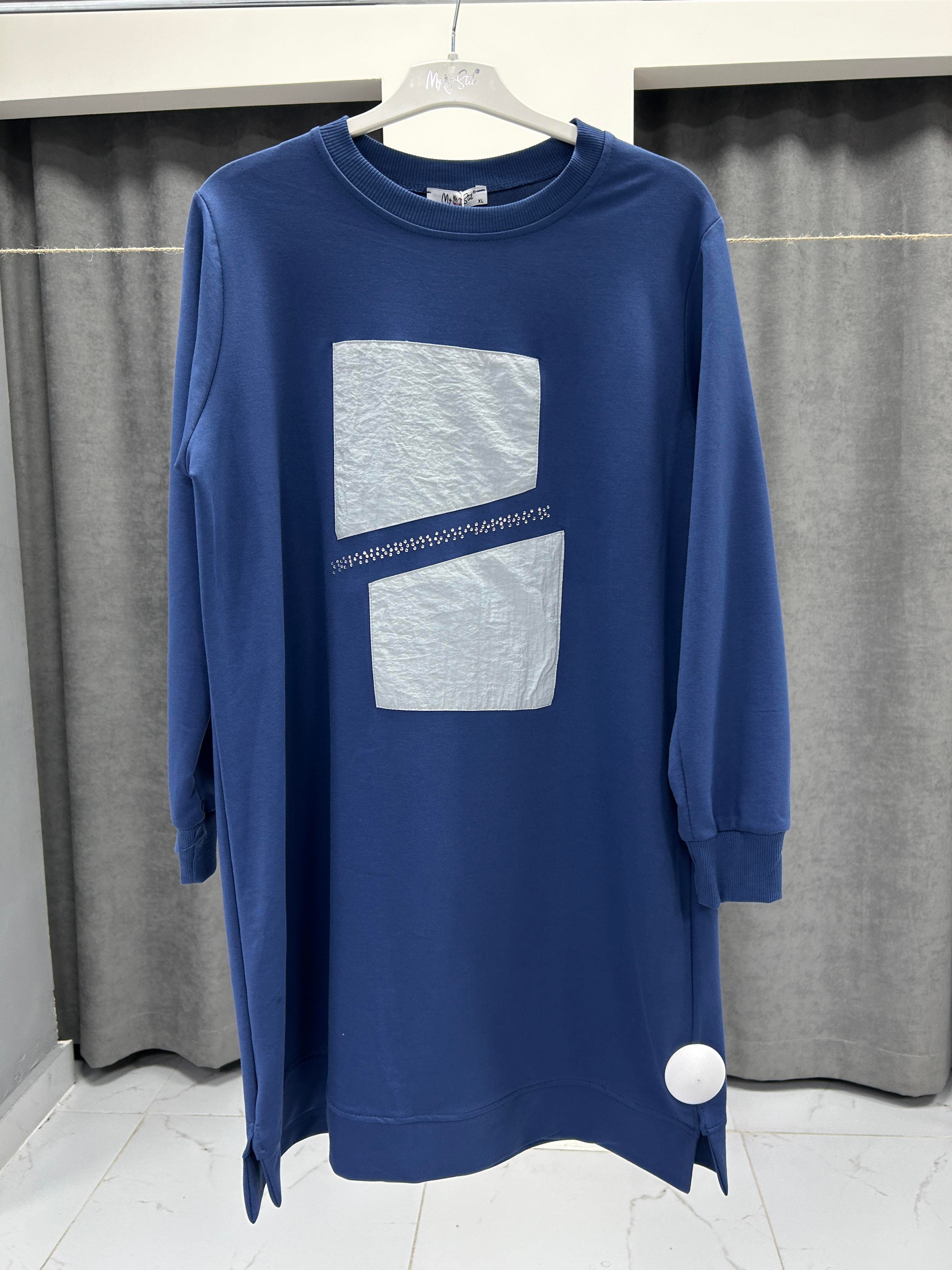 M25K00329-084 MY STİL KADIN KOMBİN VE TAŞ DETAYLI TESETTÜR TUNİK - MAVİ
