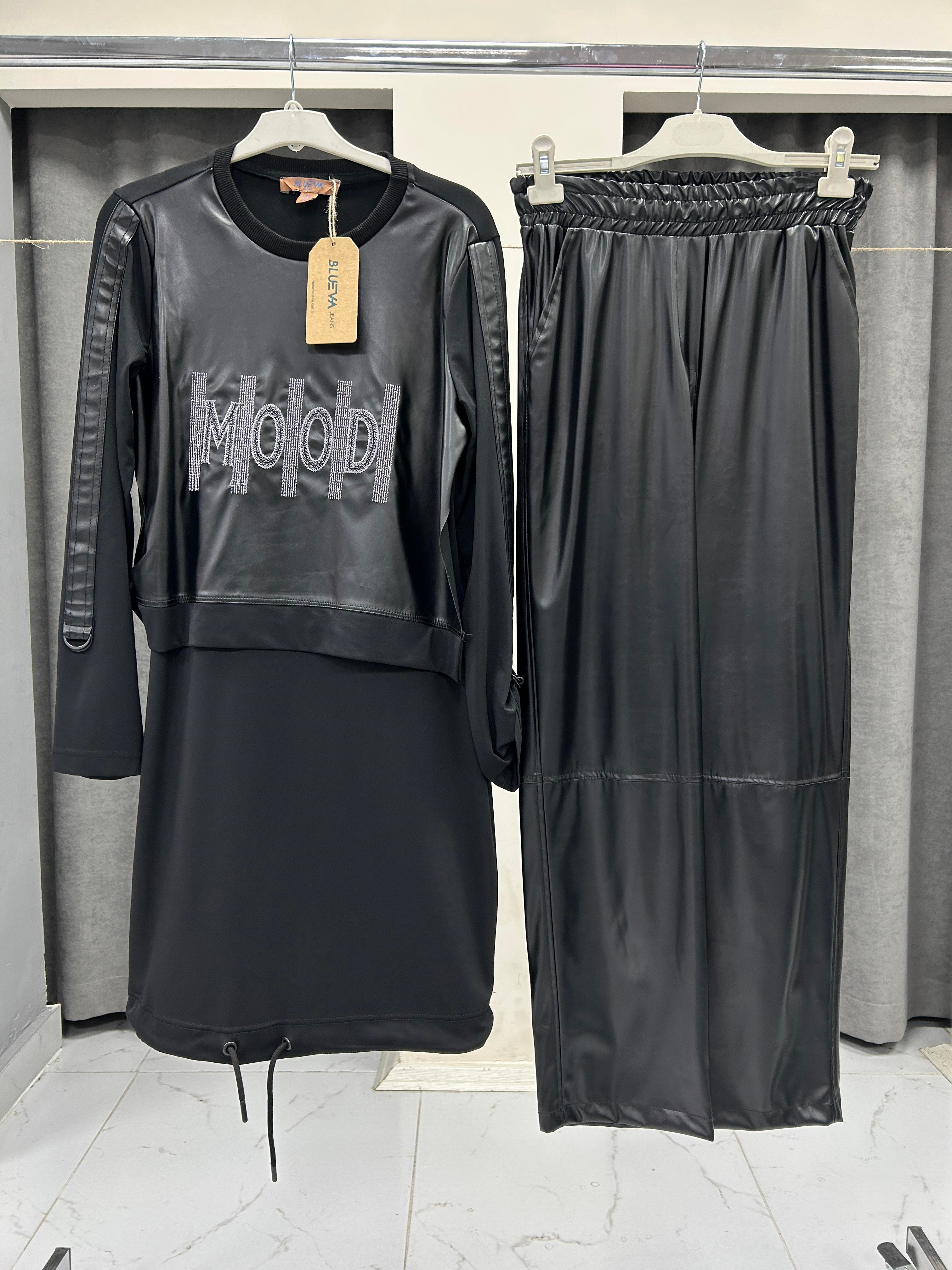 P22K-2010 BLUEVA RUFFY DERİLİ İKİLİ SPOR TAKIM - SİYAH