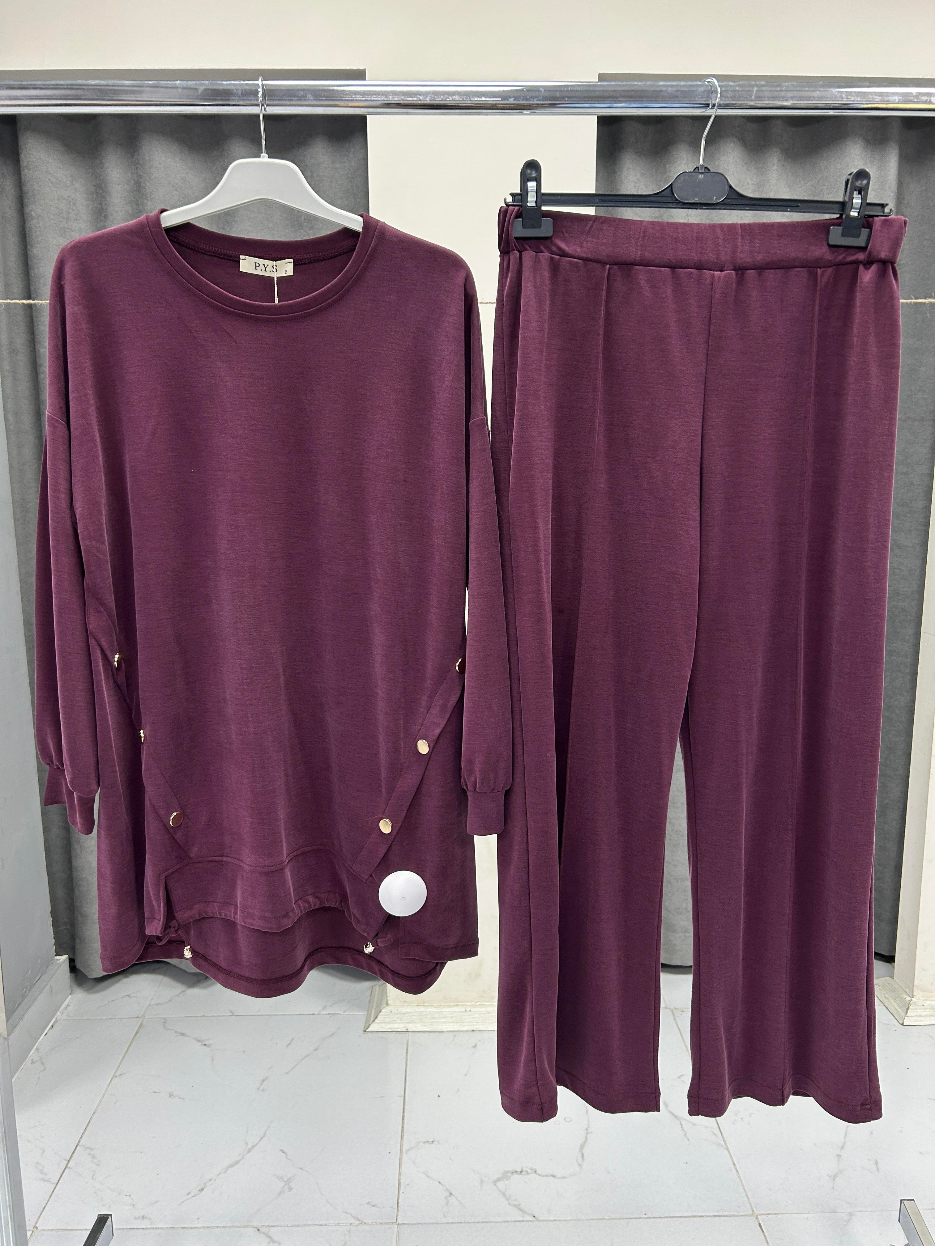 P25K20375-022 P.Y.S KADIN ÇITÇIT DETAYLI TESETTÜR TAKIM - BORDO