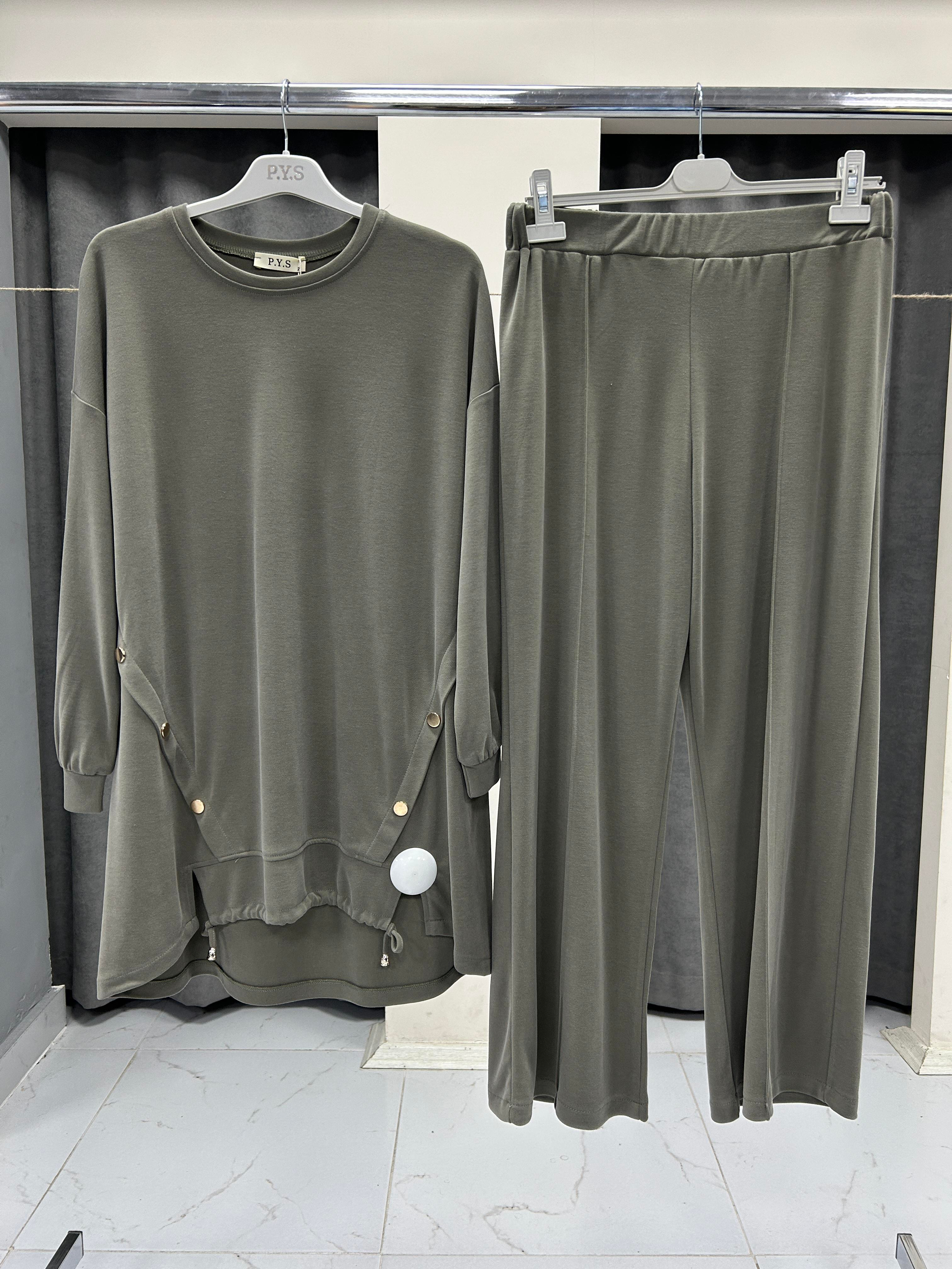 P25K20375-022 P.Y.S KADIN ÇITÇIT DETAYLI TESETTÜR TAKIM - HAKİ