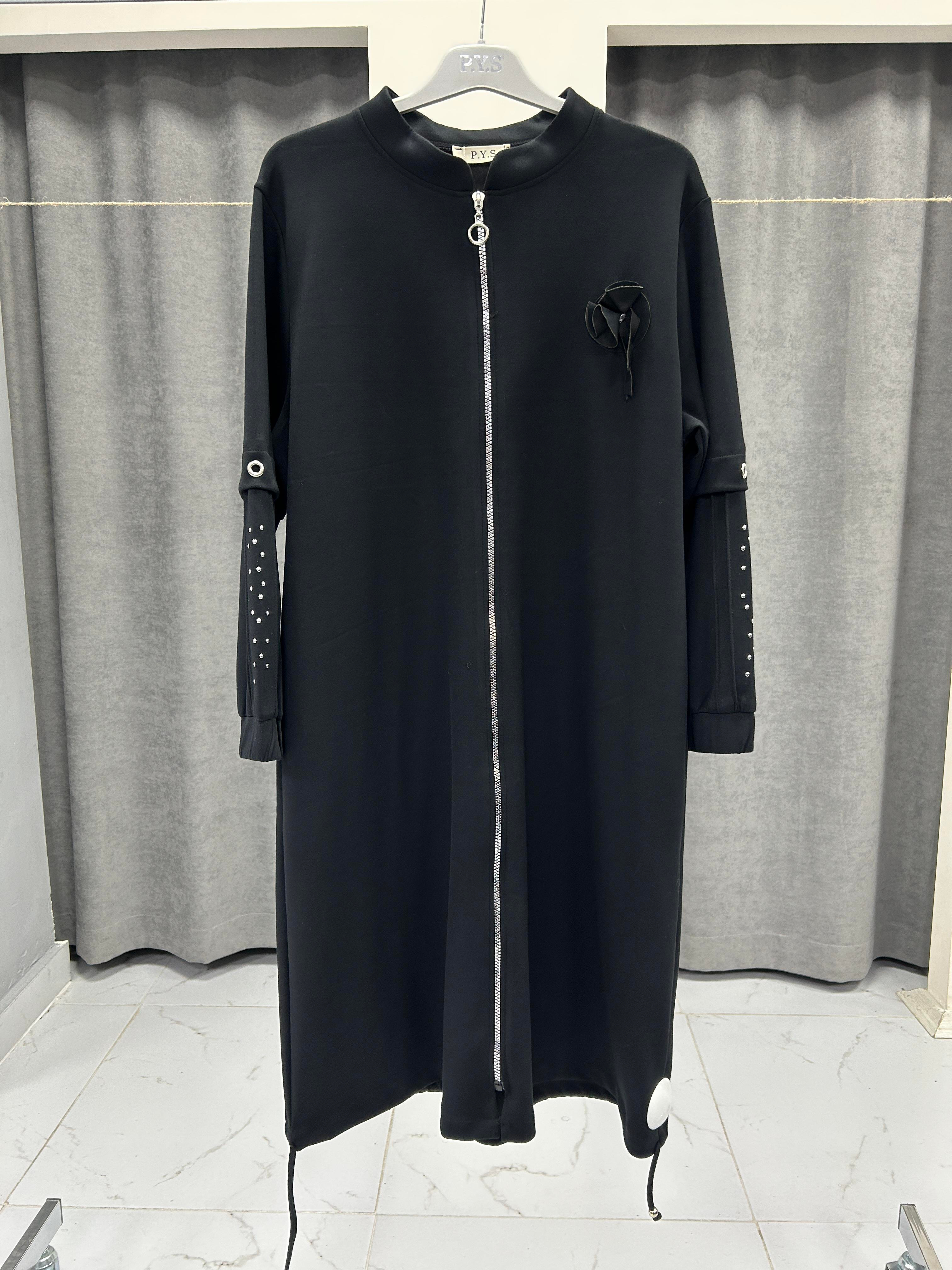 P25K40142-019 P.Y.S KADIN TAŞ VE BAĞCIK DETAYLI TESETTÜR KAP - SİYAH