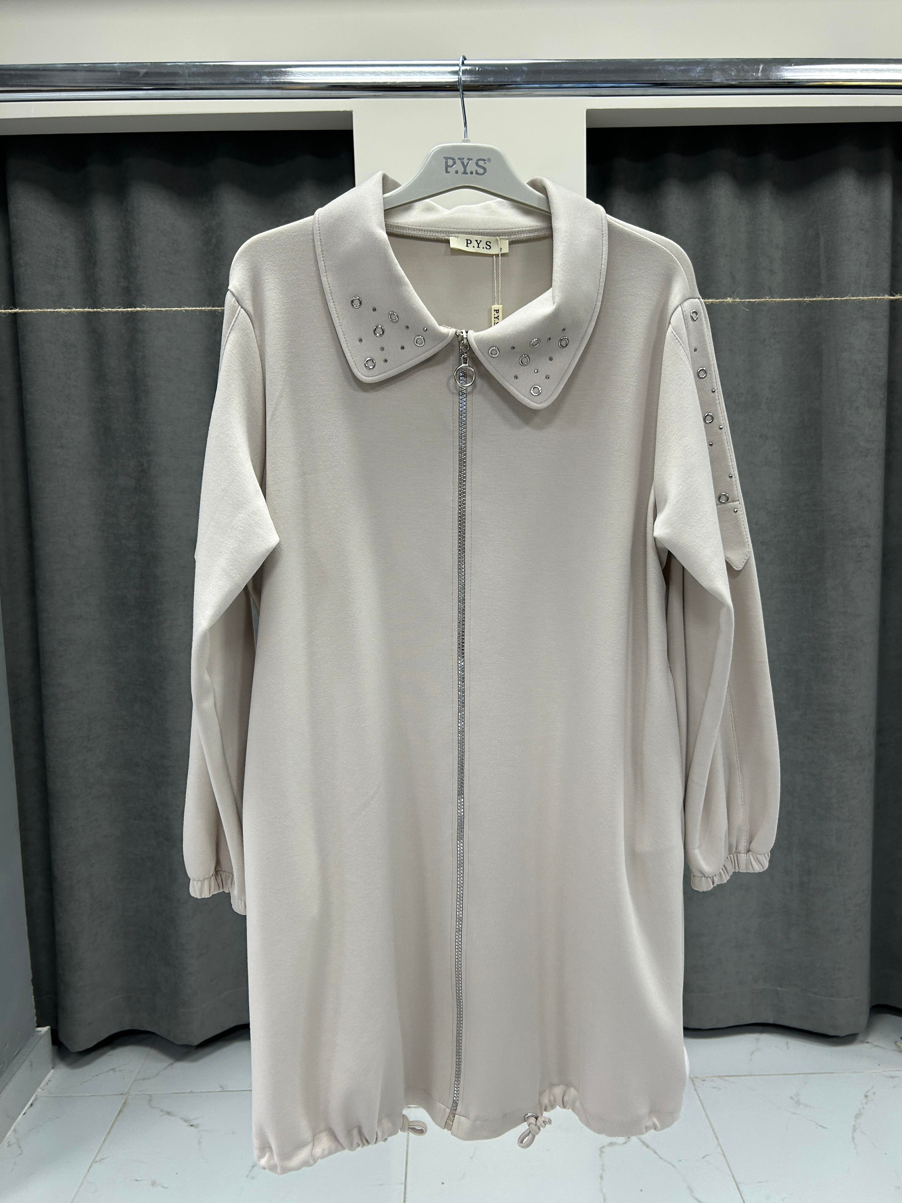 P25K40144-019 P.Y.S KADIN YAKA OMUZ TAŞ DETAYLI TESETTÜR KAP - TAŞ